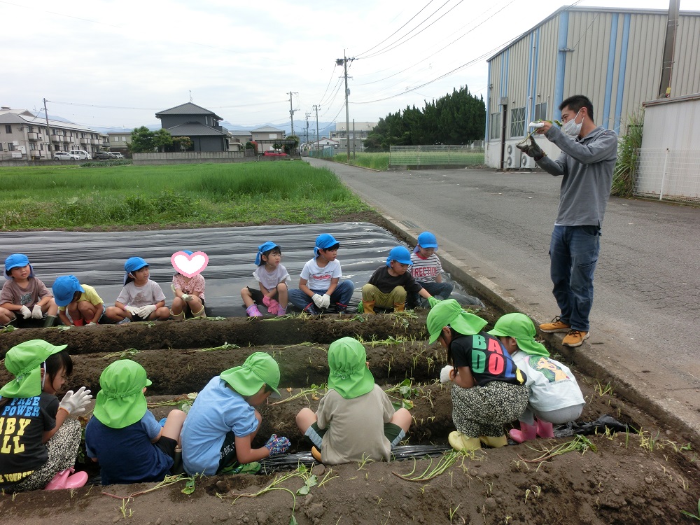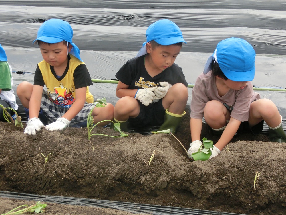 今日は4・5歳児さん達で、離れの畑に行き、さつま芋の苗植えを行ってきました☆