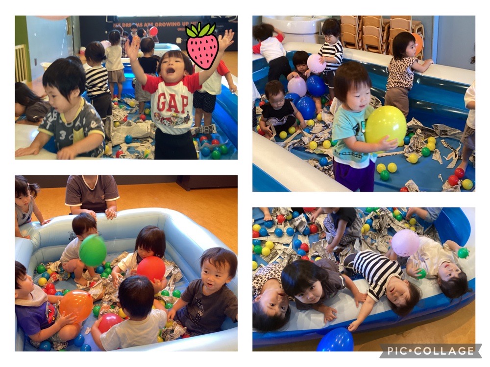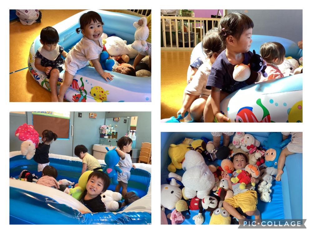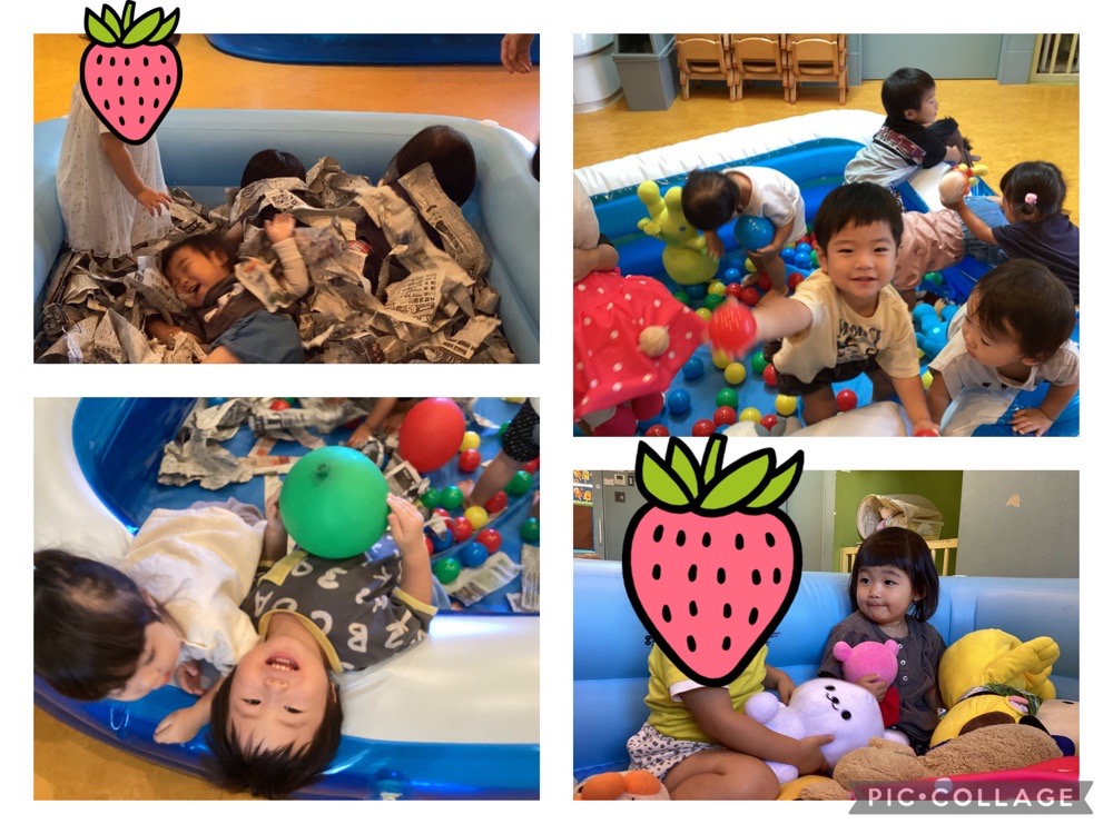 そこで、最近だいちチームで楽しんでいるのが、プールに様々なおもちゃを入れて遊ぶこと!!