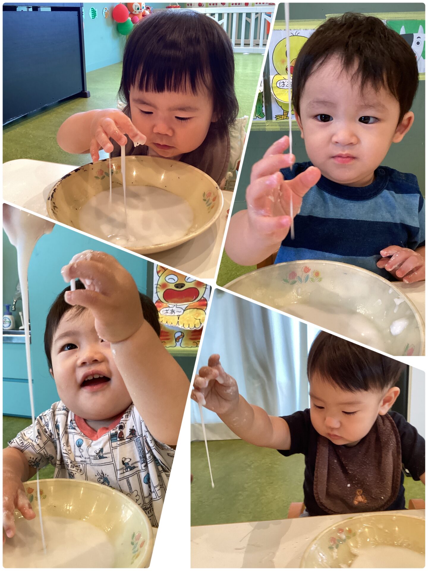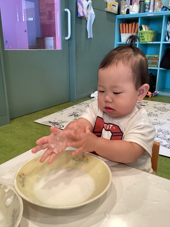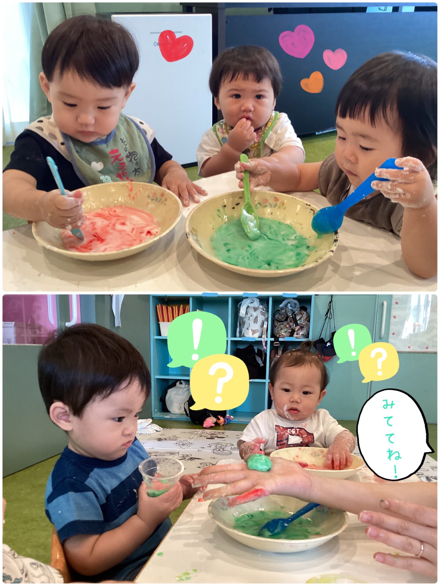 感触が気持ち良すぎて、腕にぬりぬり〜としているお友達もいました❤️