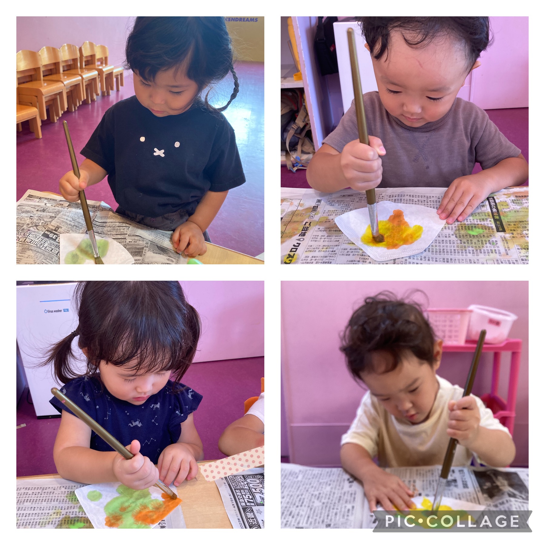 9月の製作は鈴虫を作りました⭐️コーヒーフィルターに絵の具でペタペタ…🎨秋らしい色合いになりました🍂 製作遊びが大好きなあめチームさんです(*^^*)
