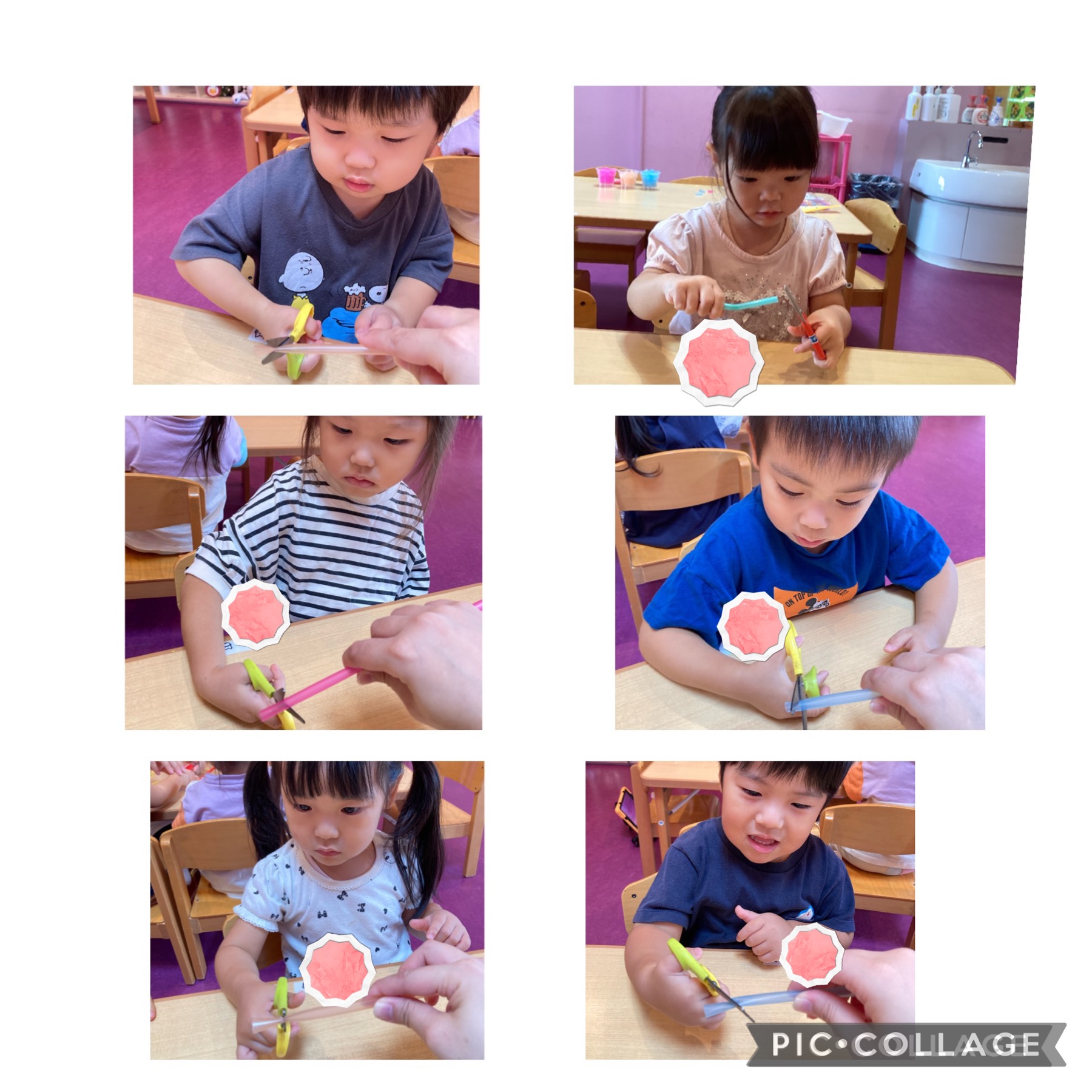 今月は初めてはさみ遊びに挑戦したあめチームさん☺︎持ち方を知らせ、恐る恐るチョキ、チョキ✂️