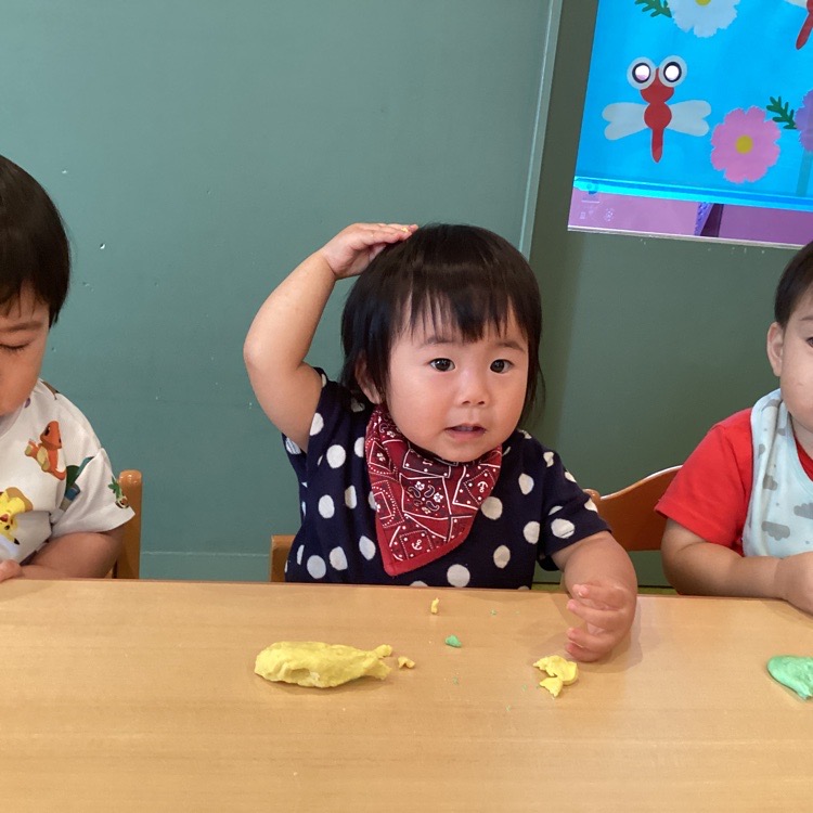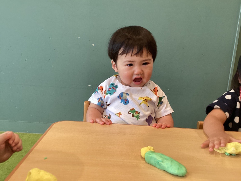 粘土をを机に置くと、すぐに手で持って思い思いに楽しんでいました🎵