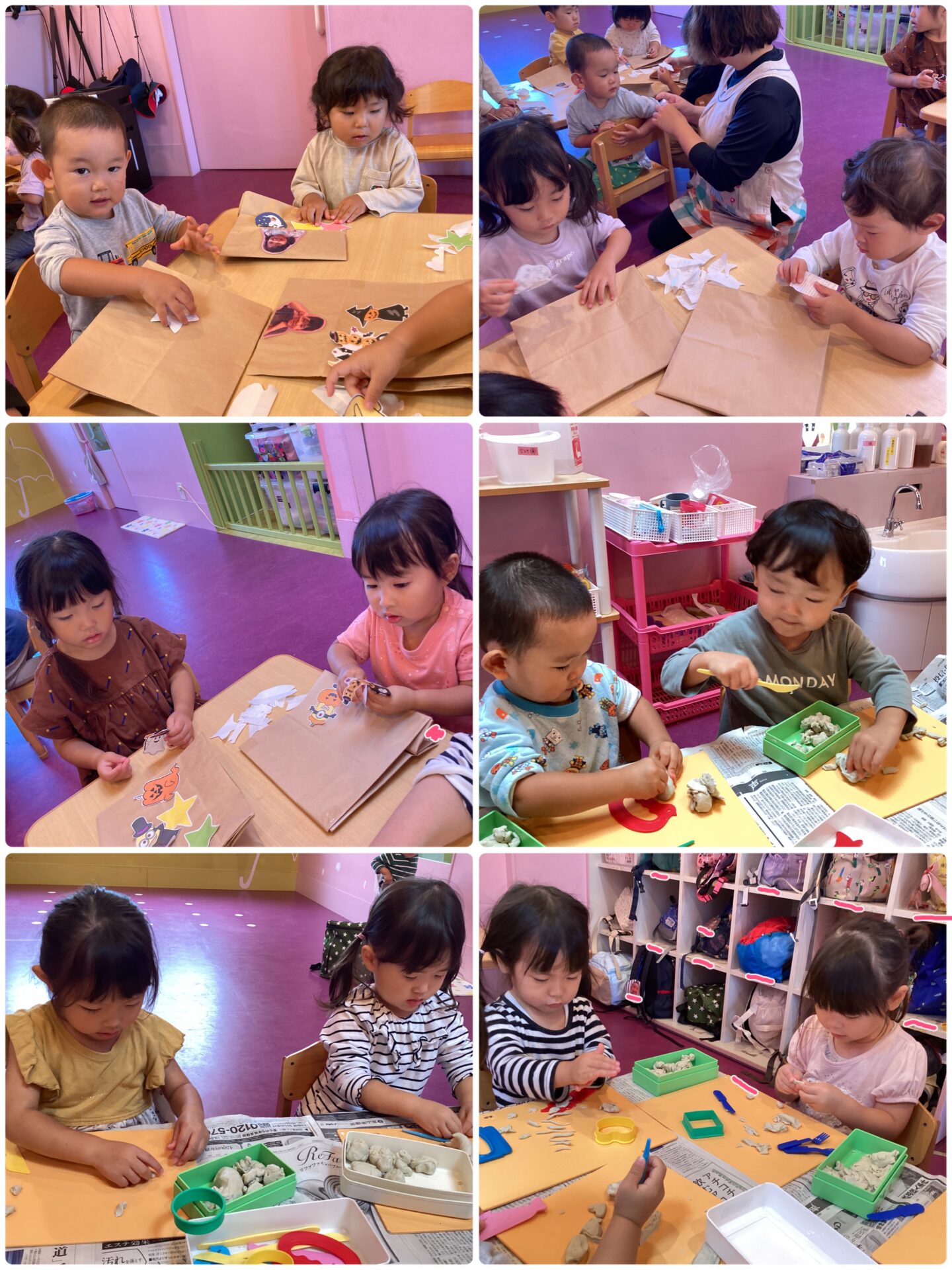 また、ハロウィンバックを作ったり、粘土遊びをしたりと座って行う活動時間も増えてきました☺️