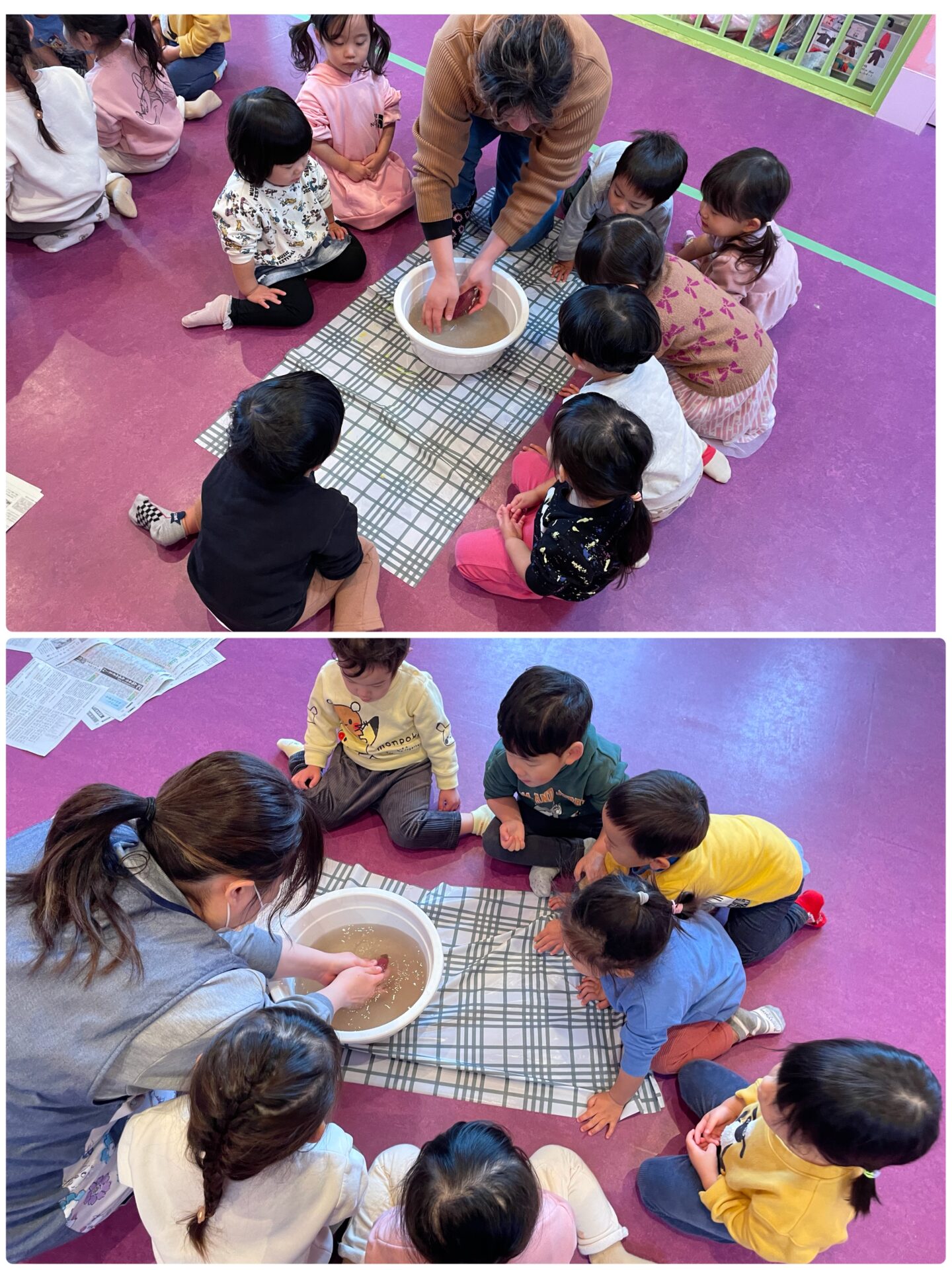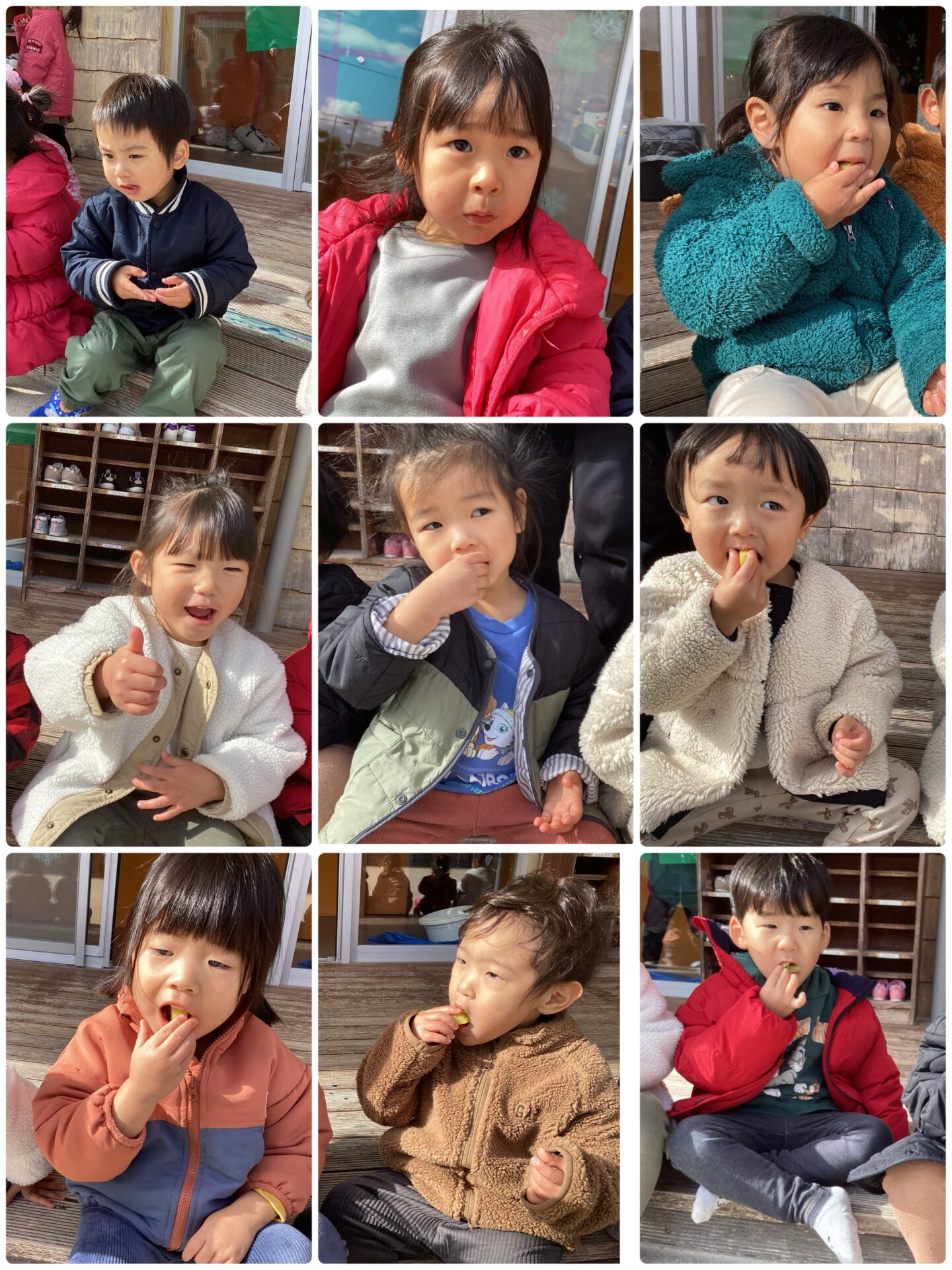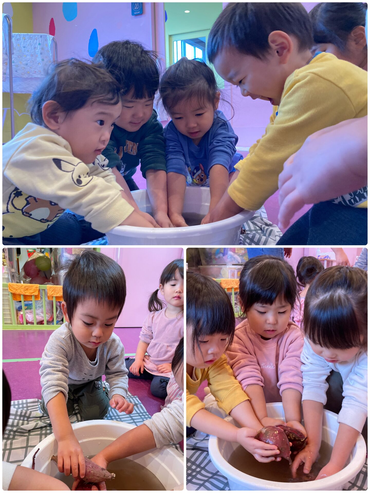 18日の焼き芋会では、お芋を洗い自分で頑張って新聞紙に包みました🍠
