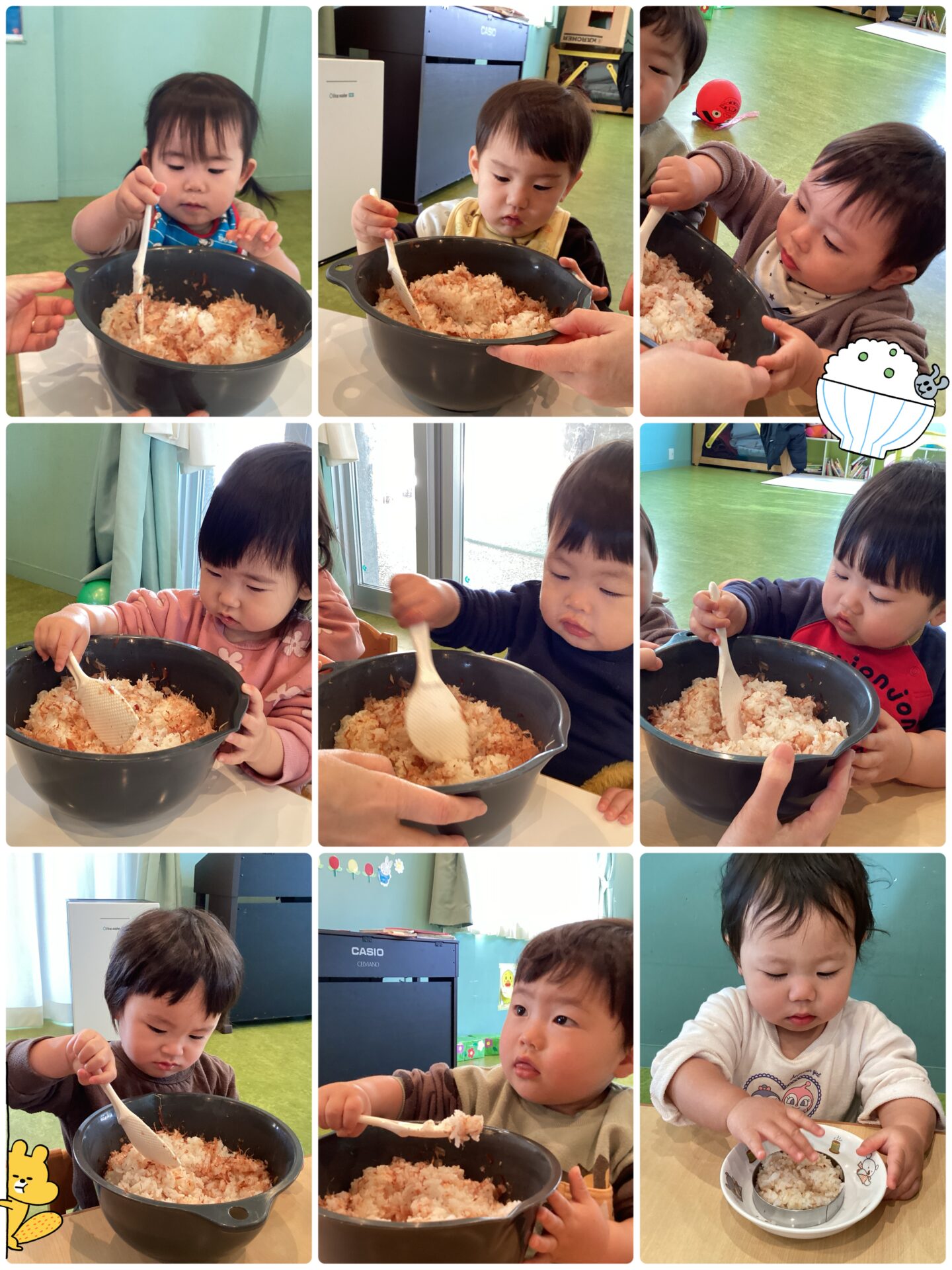 おにぎりを見て「アンパン!」と喜ぶ姿も見られ楽しいクッキングとなりました!