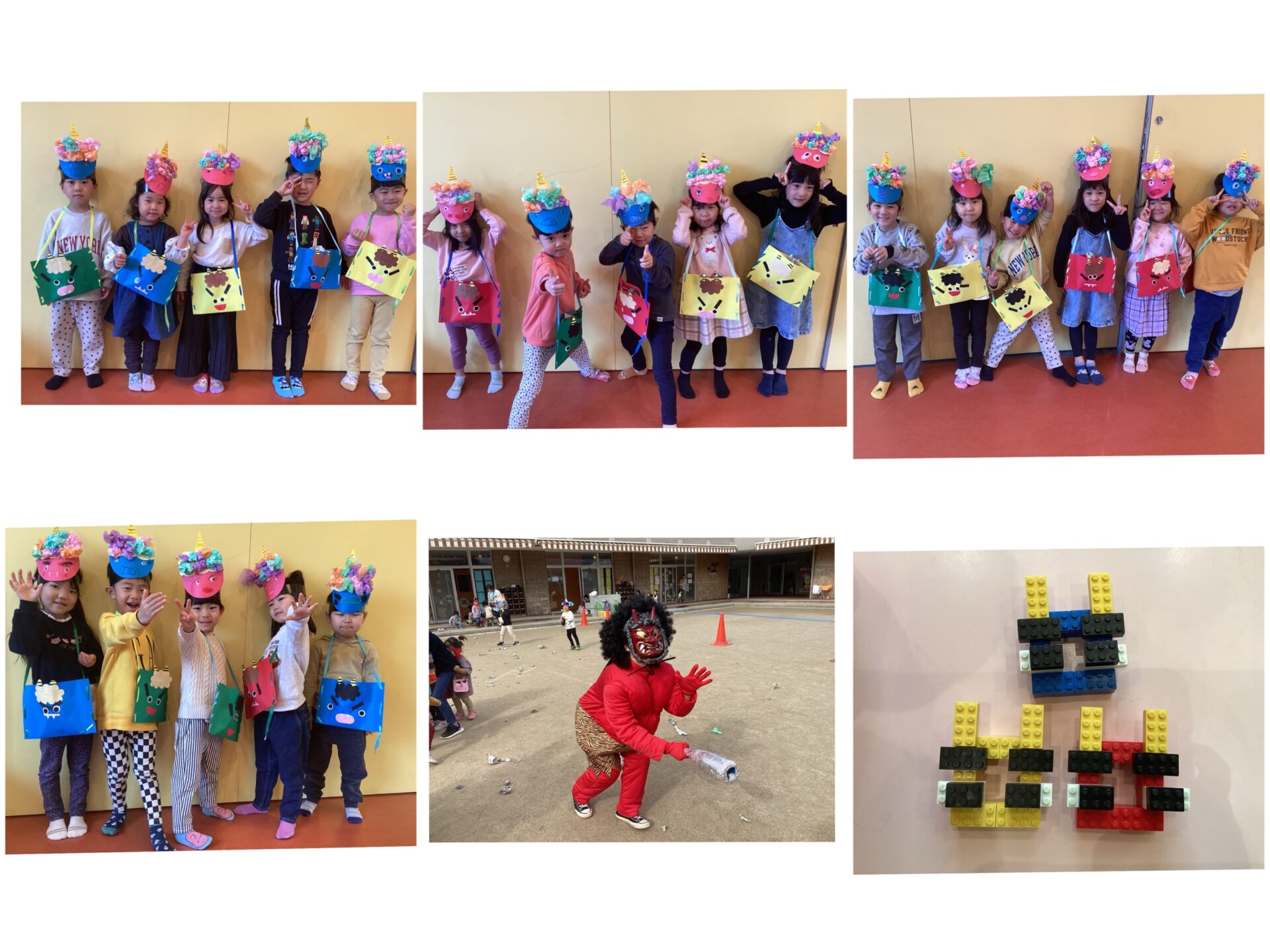 2024.02.22 ブログ そらチーム(4歳児)2月💖 豆まき会では、鬼に豆を投げたり、泣いてしまう子も🥹自分の中の悪い鬼をやっつけることができました✨✨レゴで上手に鬼を👹作る子も✨✨ クッキングでパフェを作ったり、公園にも遊びに行きました🥺✨✨ 一覧へ戻る
