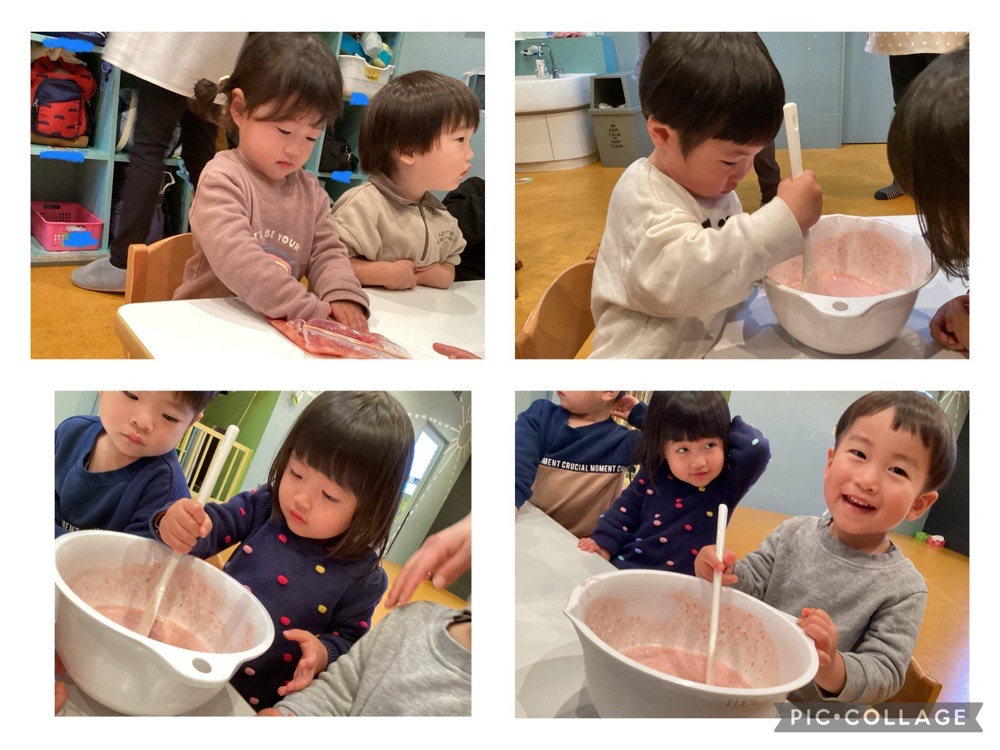 美味しそうな匂いや色合いに、興味津々で作っていきます…✨