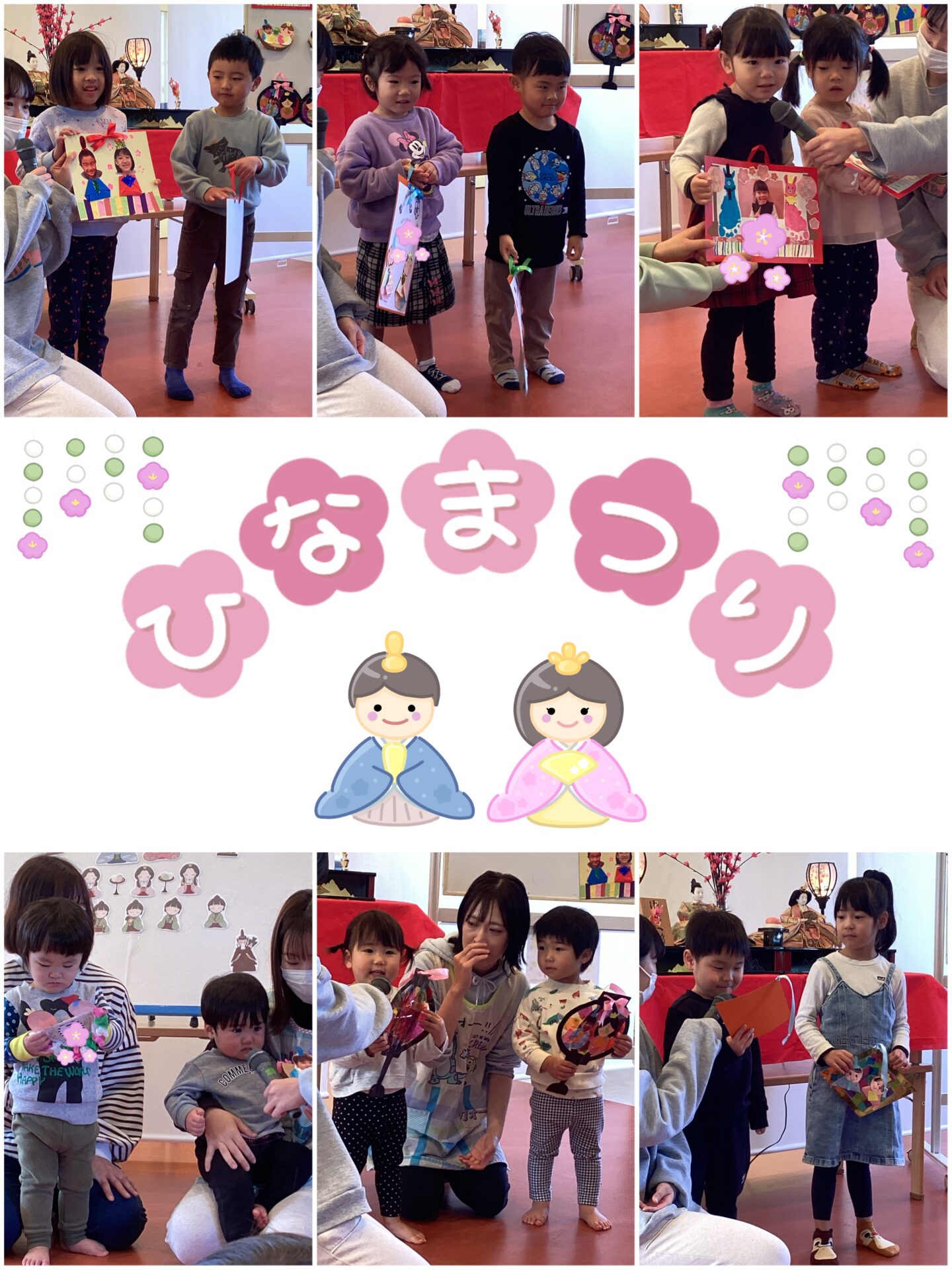 そして、”うれしいひなまつり”をみんなで歌い、各クラス一生懸命作ったひな祭り製作の紹介!