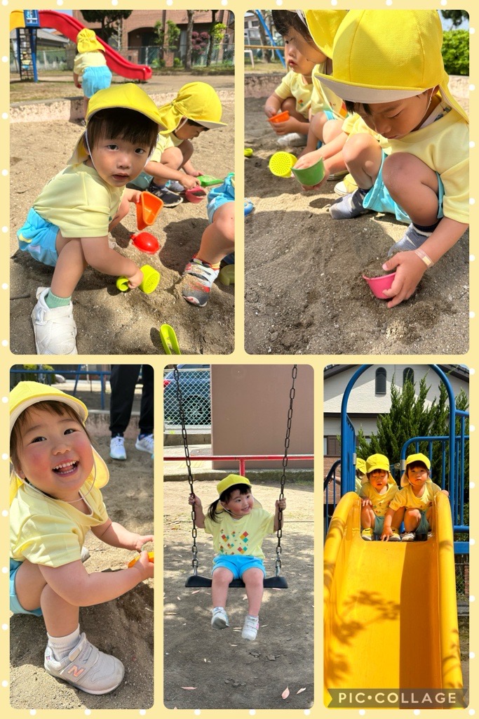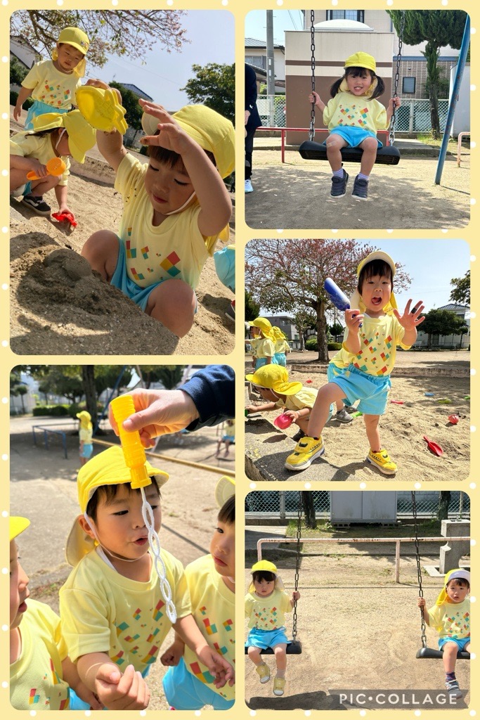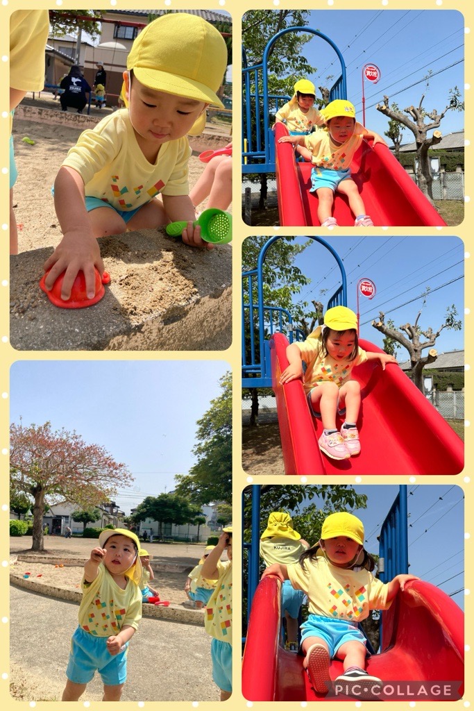 一丁目公園に着くとすぐに滑り台やぶらんこ等,好きな遊びを楽しむ子ども達♡最近虫を見つけるのにハマっているあめチームさんは、虫を見つける度に「せんせーい!ダンゴムシいたよ」「ちょうちょが飛んでる!」等春の自然に興味深々でした!