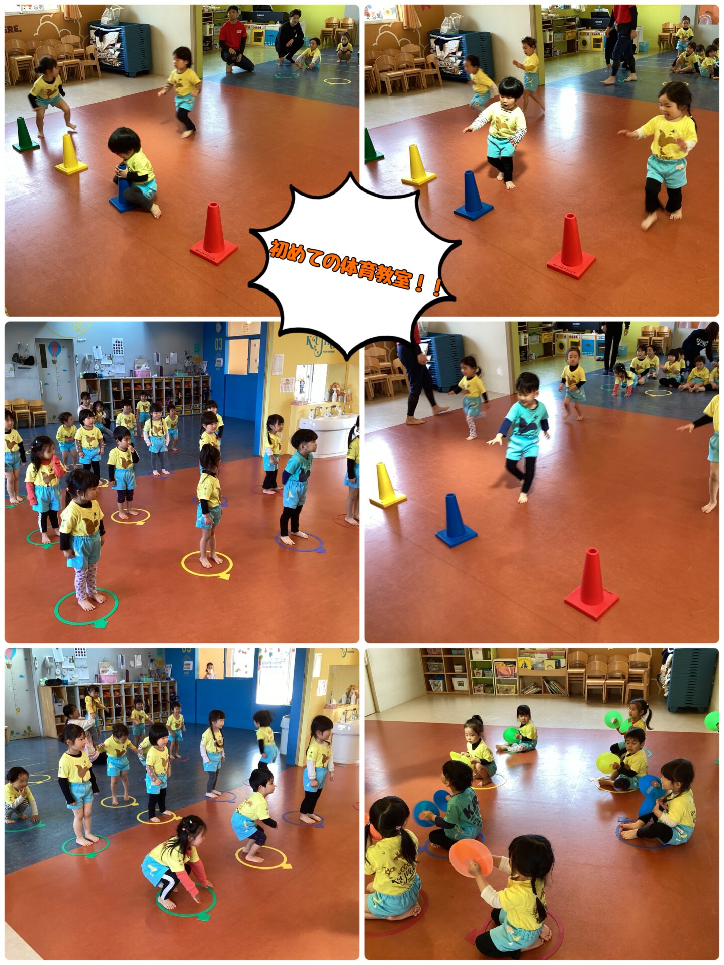 決まった順番に整列したり、終わった人は後ろに並んだり、初めてのことに苦戦しながらも体育教室をとっても楽しんでいました\(^o^)/