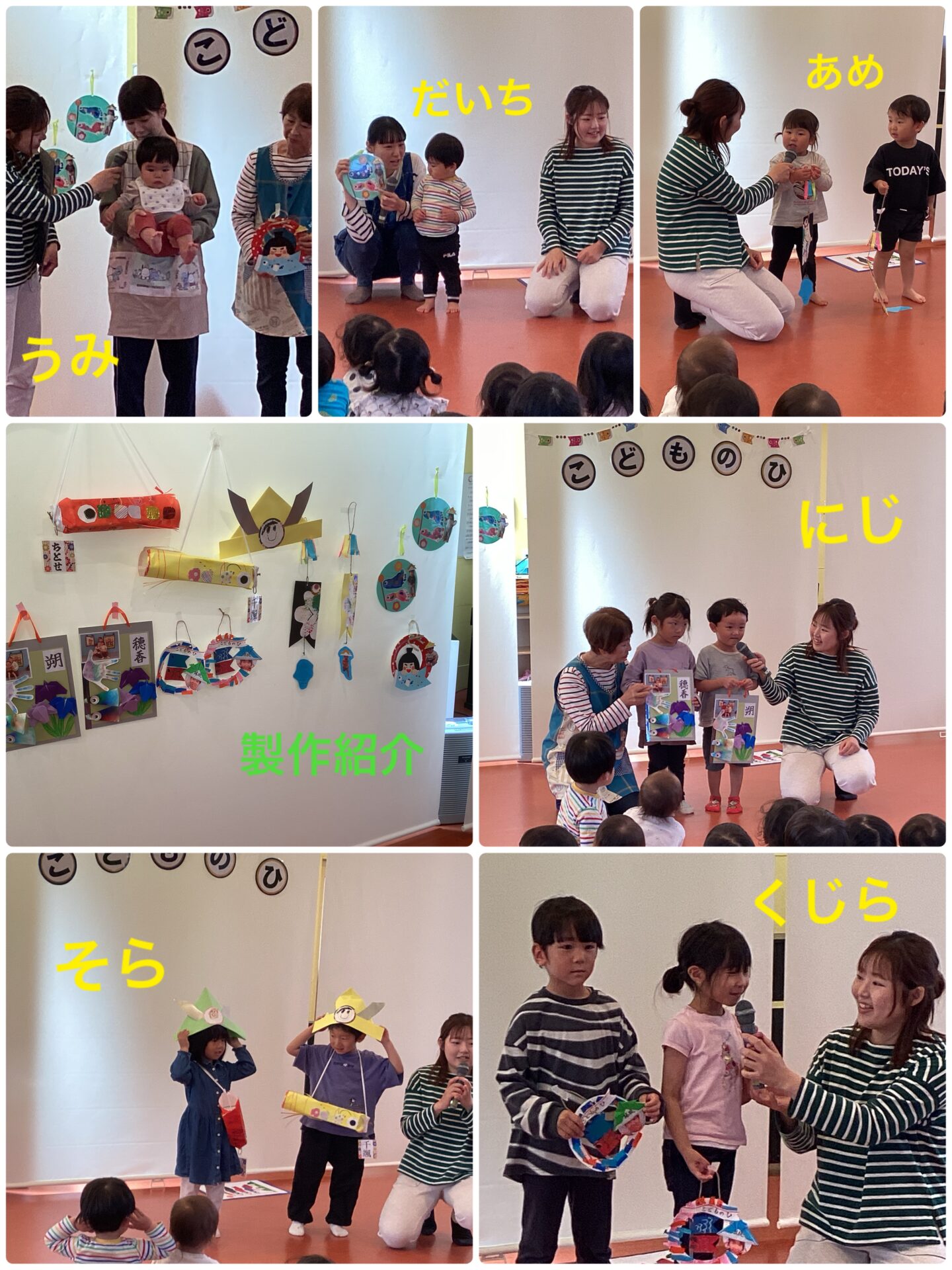 クラスごとに作った製作を披露したり、こいのぼりの歌を歌ったり、