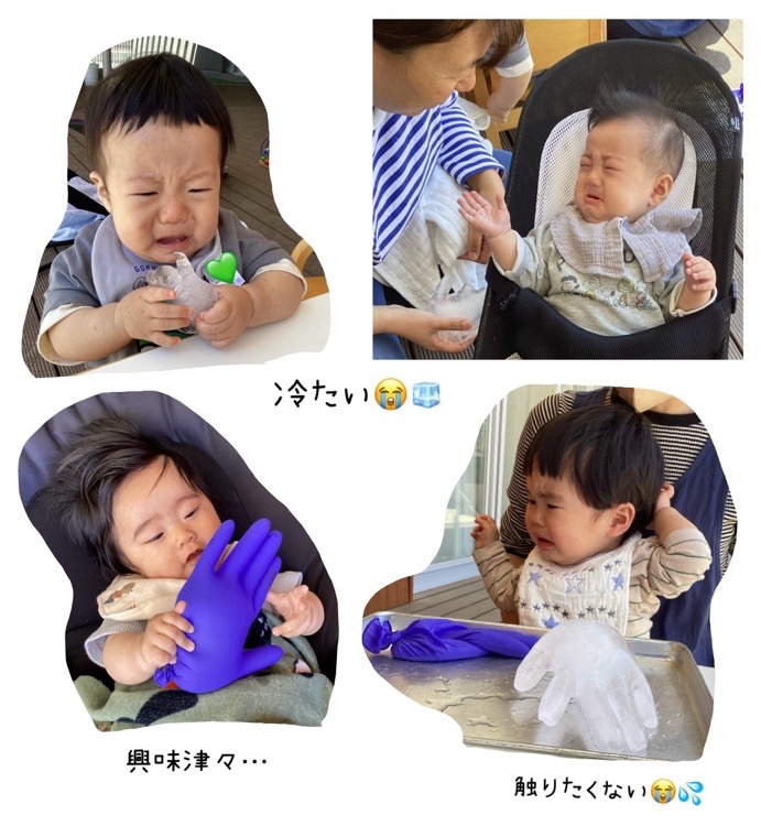 冷たくて泣いてしまう子や、手袋に怖がって泣いてしまう子がほとんどでした💦