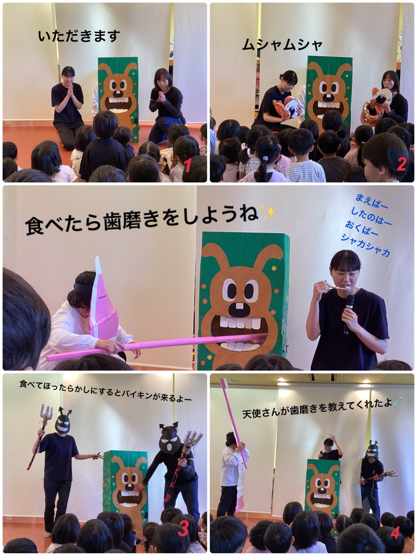 今日は保育園に歯磨きマンが歯磨き指導に来てくれたよ✨