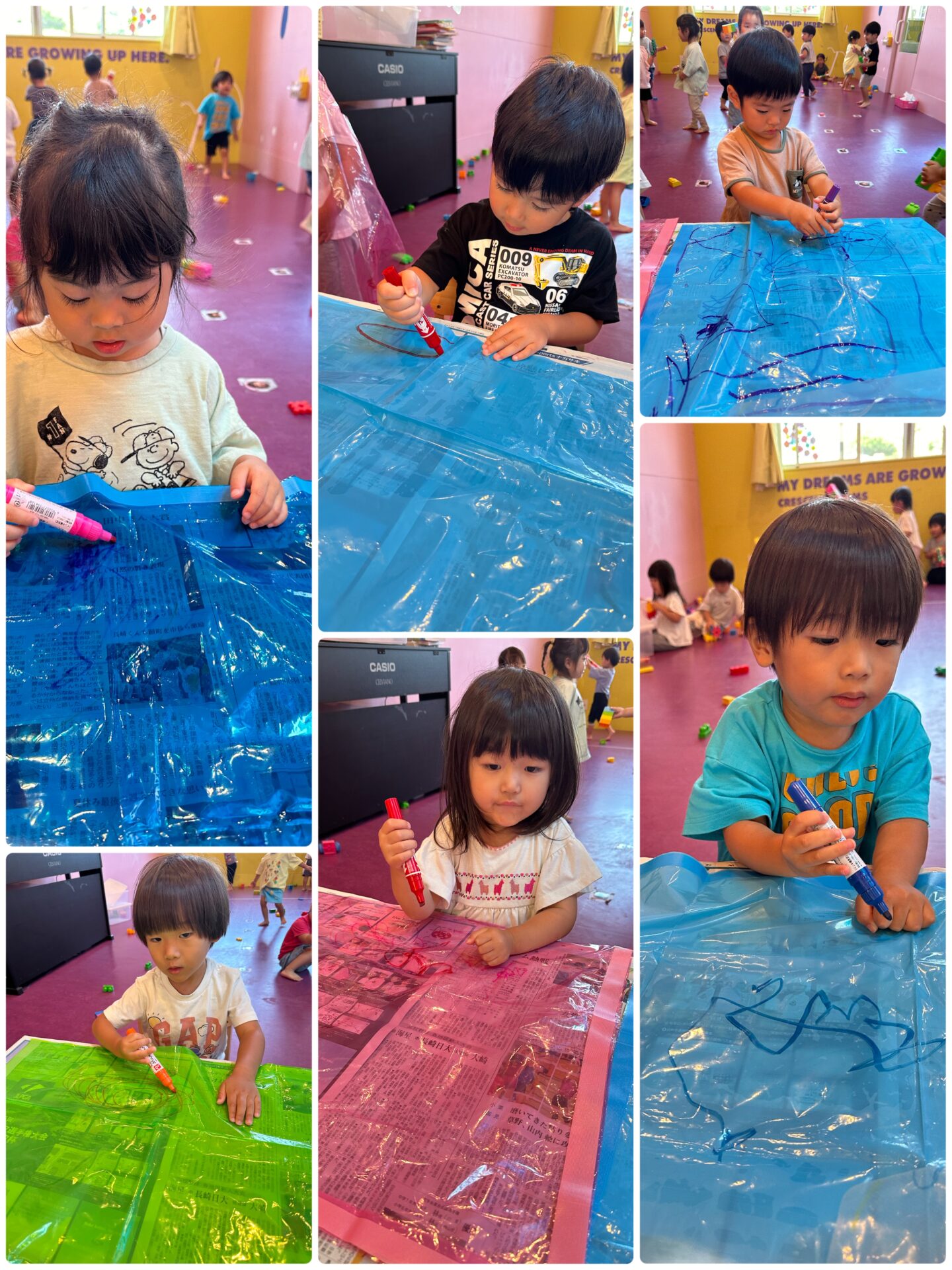 初めて油性ペンを使ってのお絵描きでしたが、保育者の話をちゃんと聞き、上手に描くことができました💕
