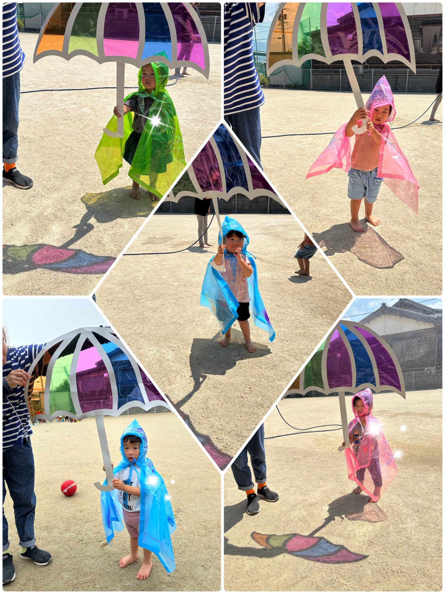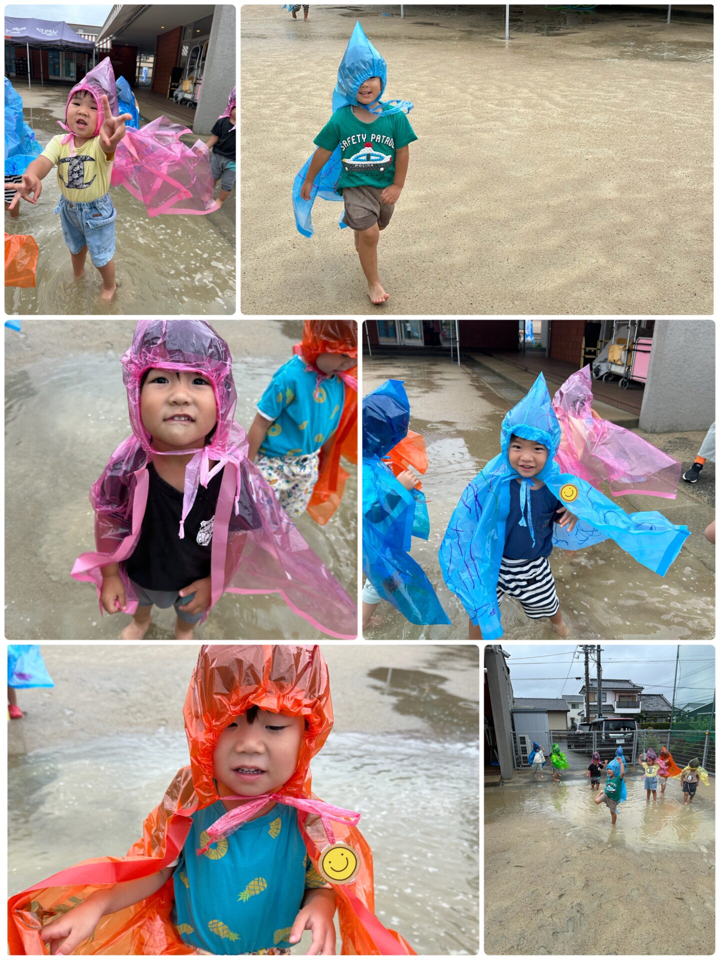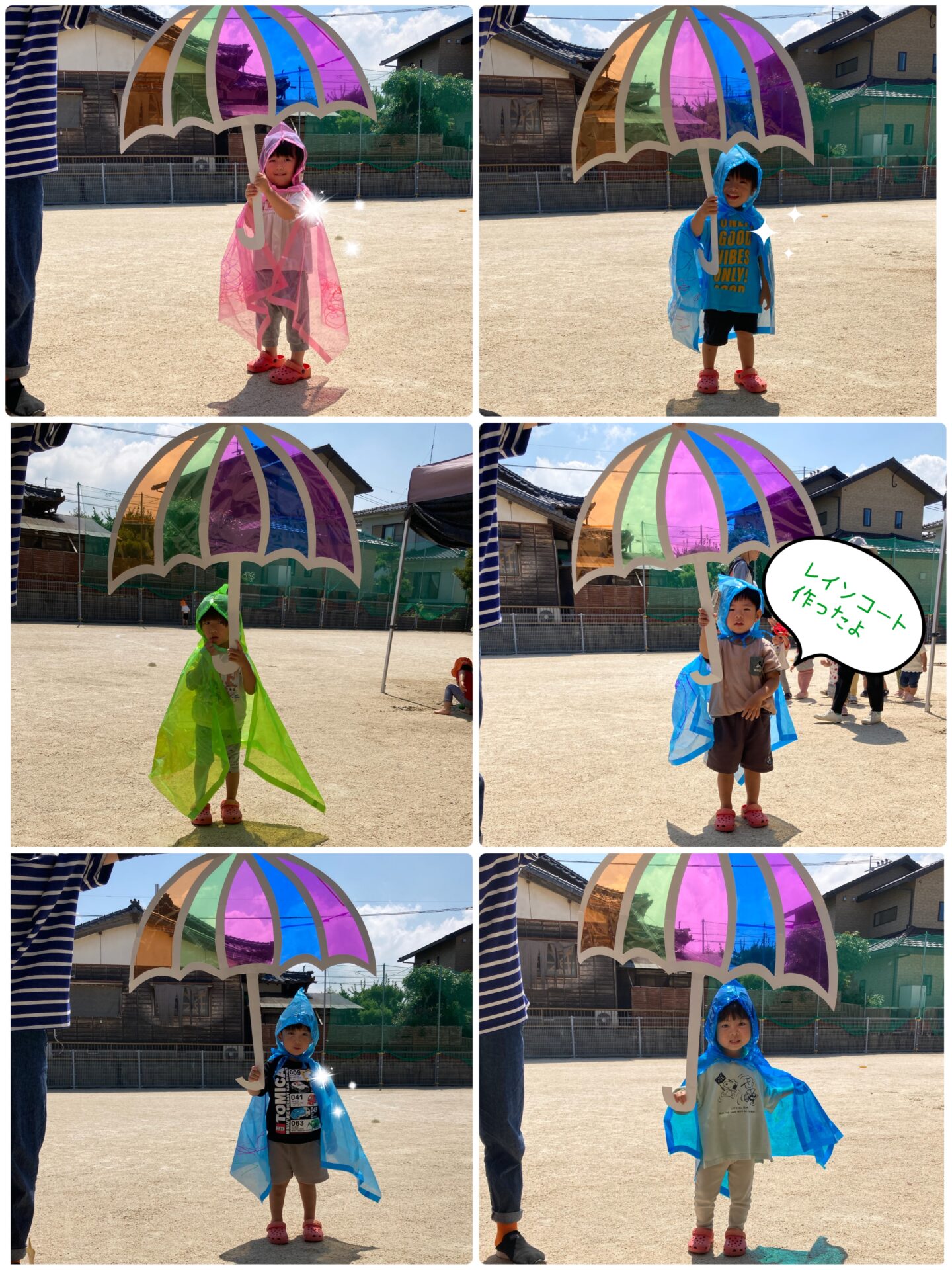 自分たちで選んだ好きな色のレインコートに、それぞれ好きなようにお絵描き🖊️✨