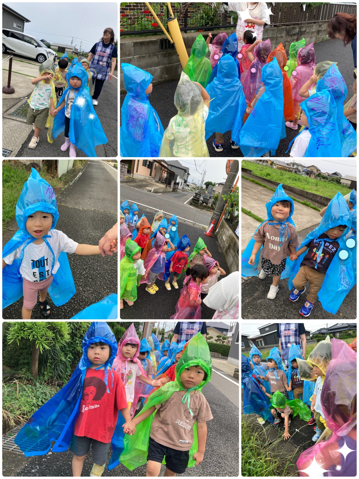 今年は例年より遅い梅雨入りでしたが、あめチームでは,雨の日にお散歩に行けるように,レインコートを作りました🎶