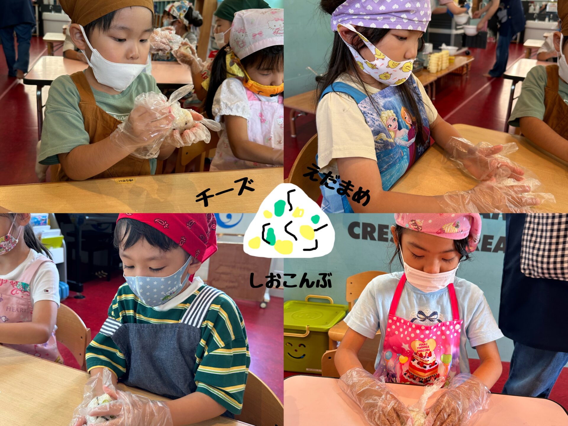 ご飯に枝豆、チーズ、塩昆布を混ぜて、おにぎりを1人ずつ握りました🍙