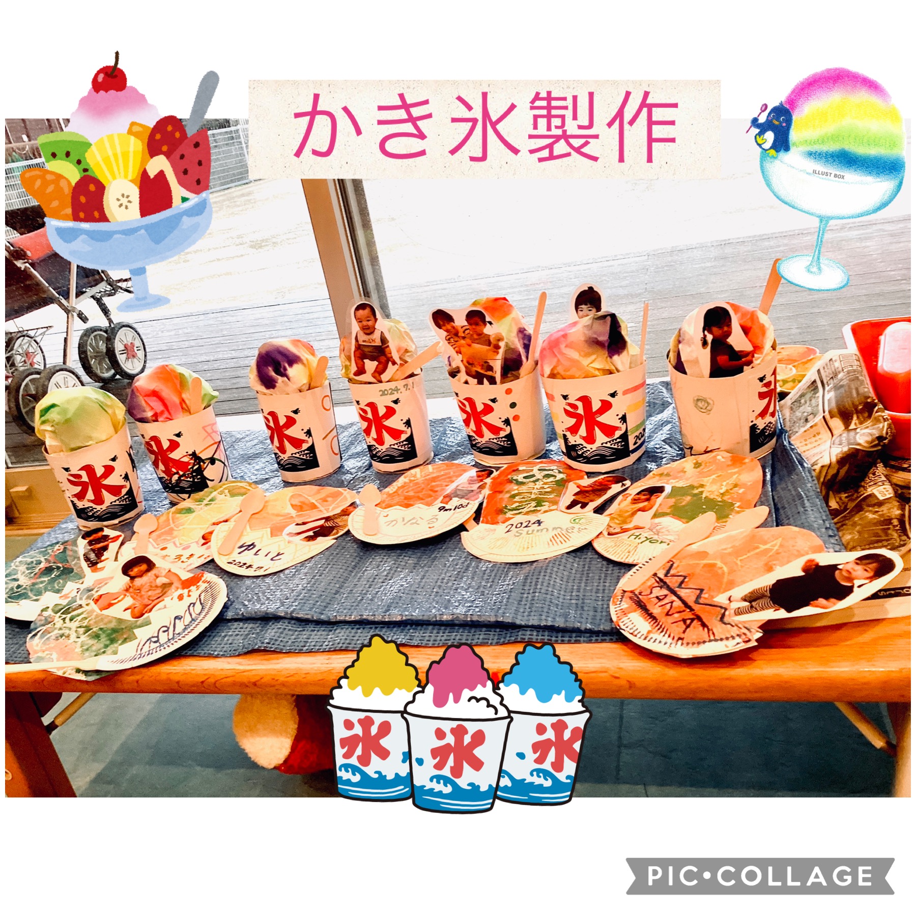 色紙に霧吹きを吹きかけ滲み絵をしたり、クレヨンと絵の具を使ってはじき絵でカラフルなかき氷を作りました。