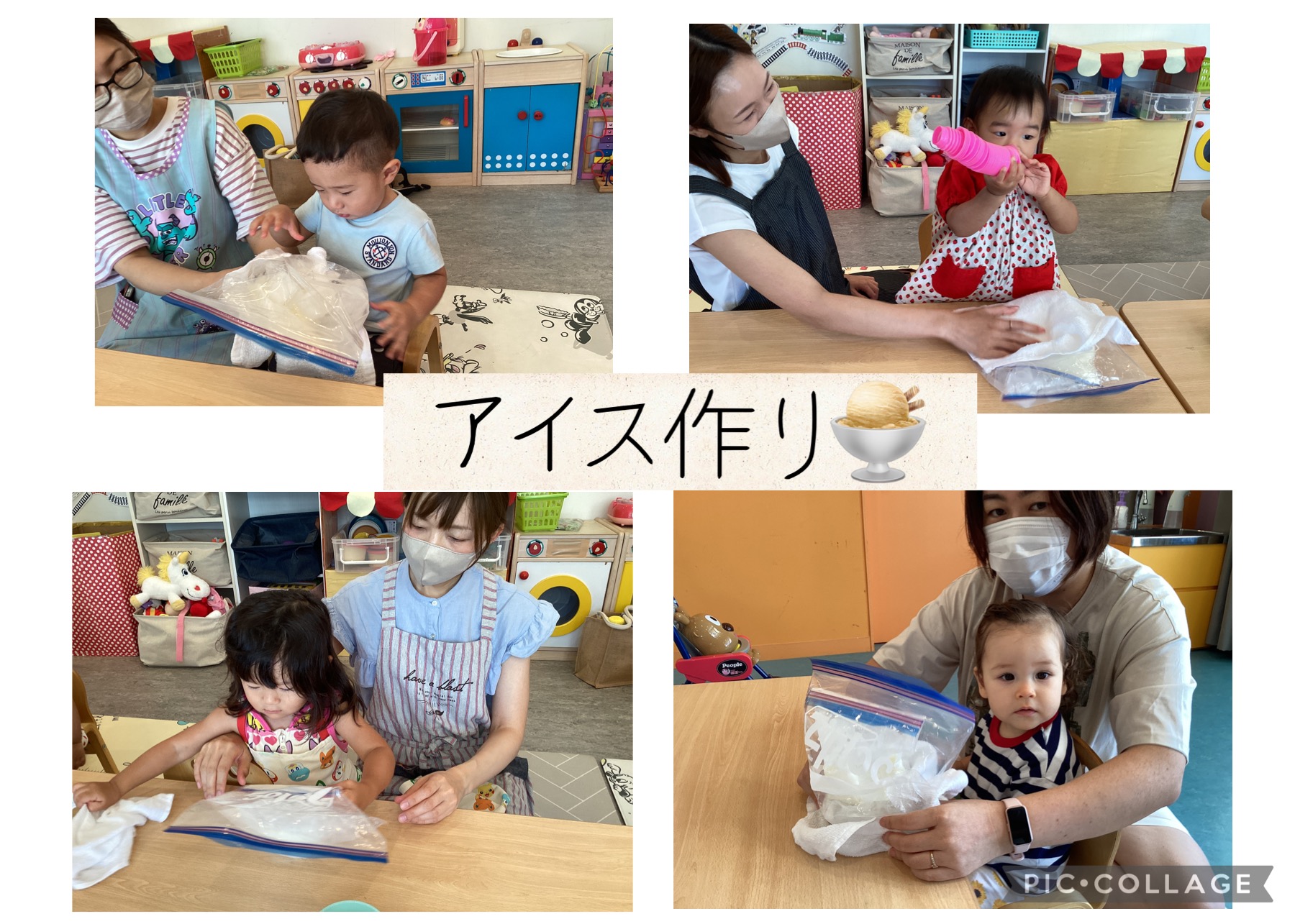 氷と塩を使って、材料を冷やし、手作りアイスも作りました。冷たくて甘いアイスに子どもたちも大喜びでした。