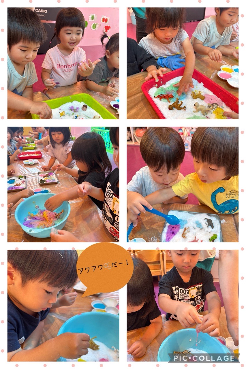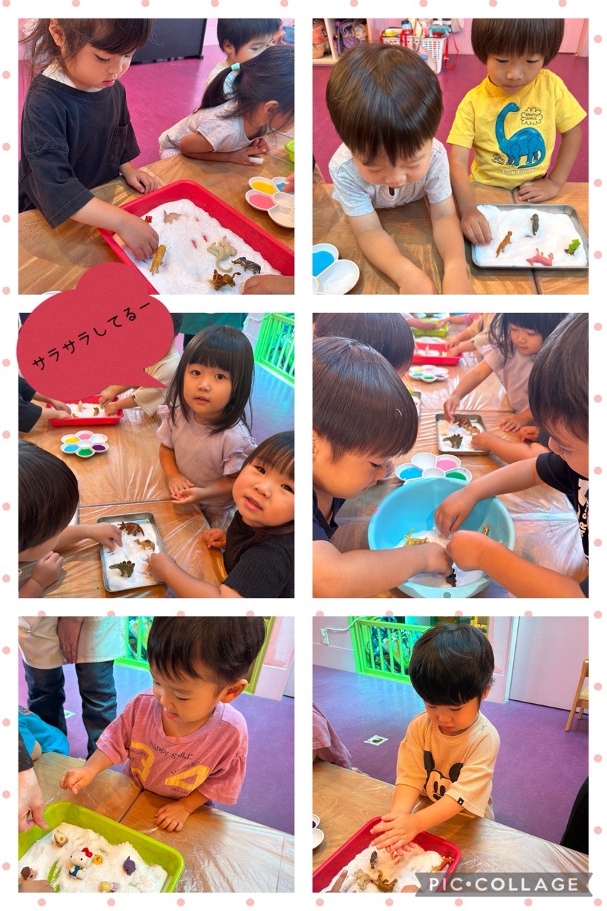 遊びが発展していき、時間ギリギリまで、楽しく遊ぶことが出来ました♡また次回も楽しい感触遊びをしていきたいです!🥰