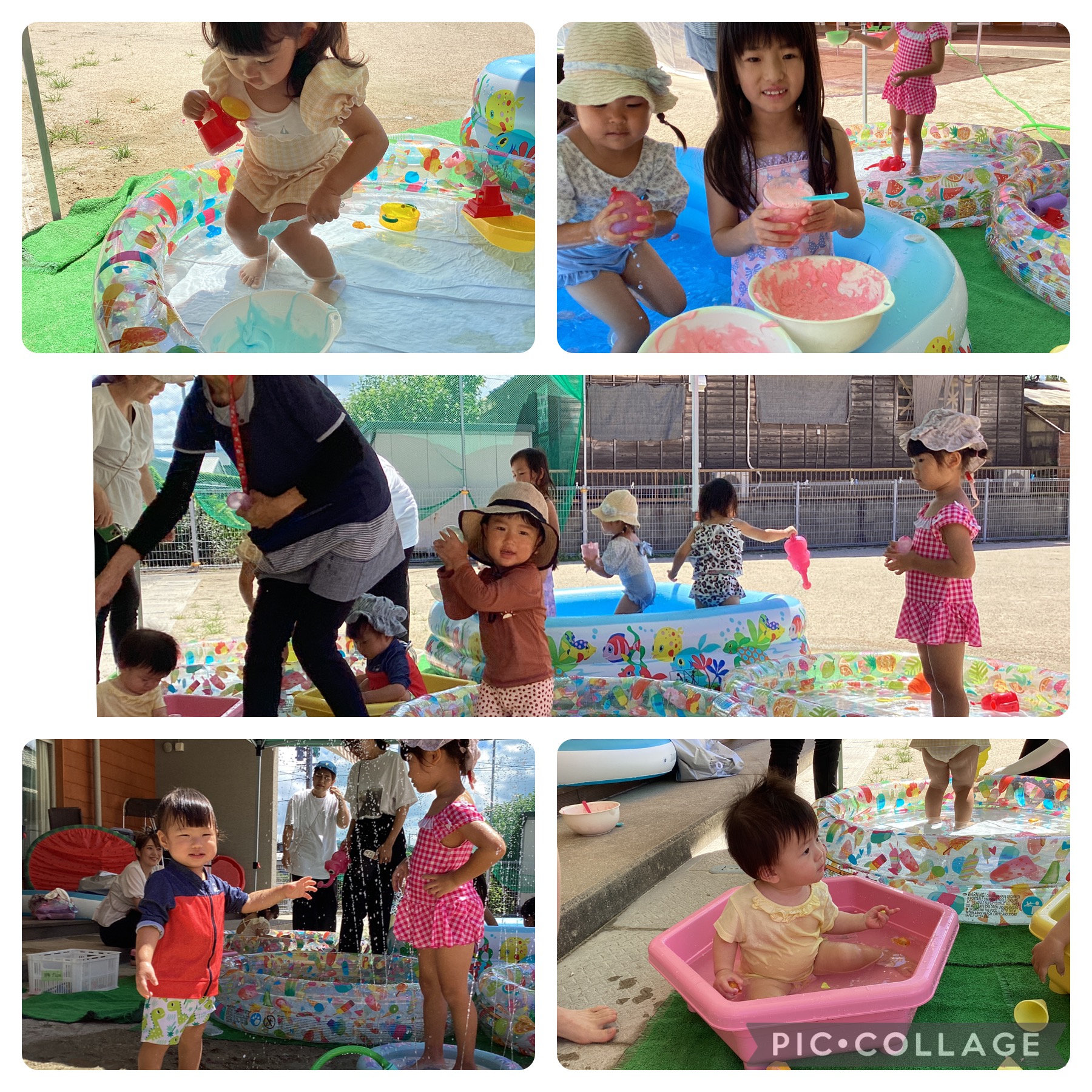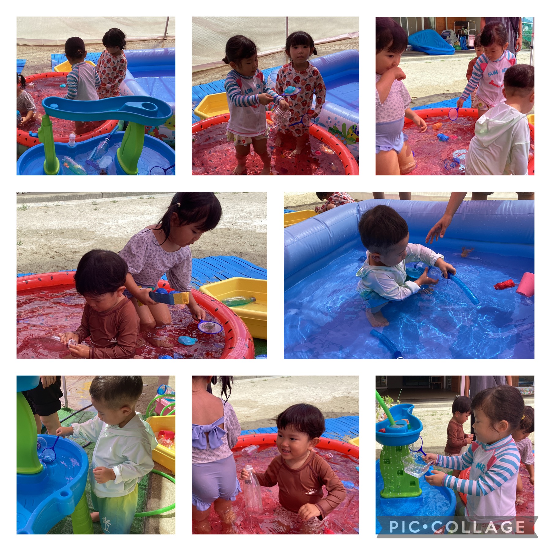 喜んでプールに入る子どもたち☺️大小様々な大きさを準備していますので、