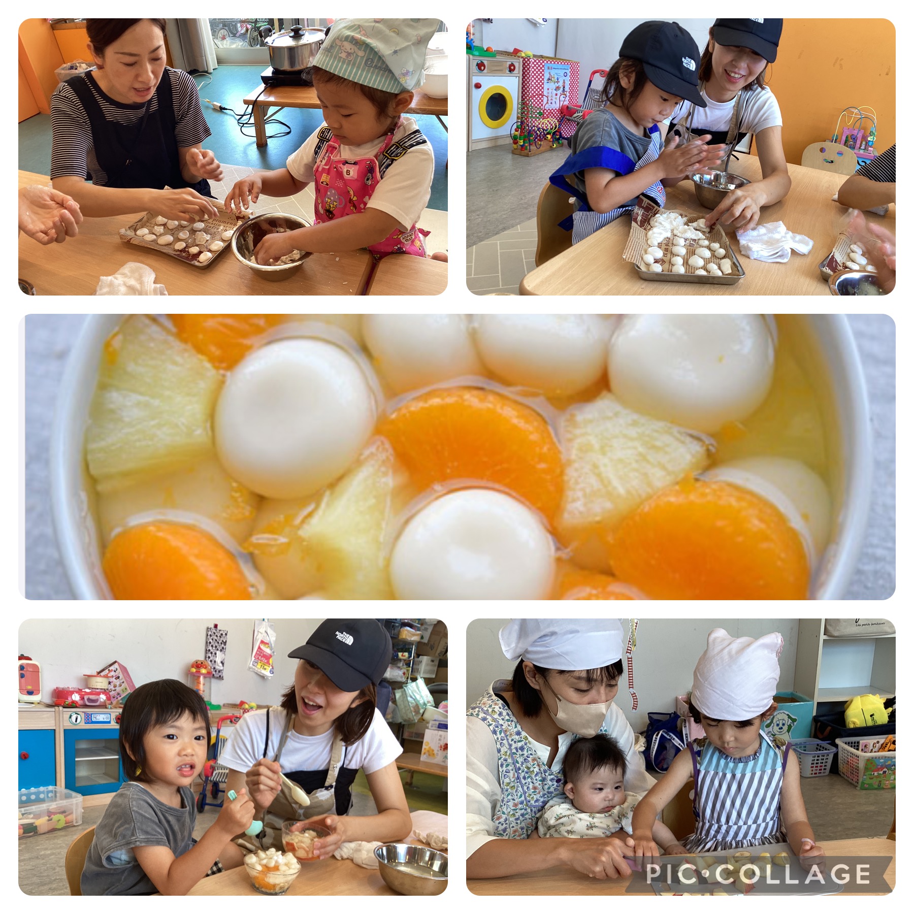 白玉をこねるところから親子で楽しみ、フルーツを切って、美味しいフルーツポンチが完成しました🍨
