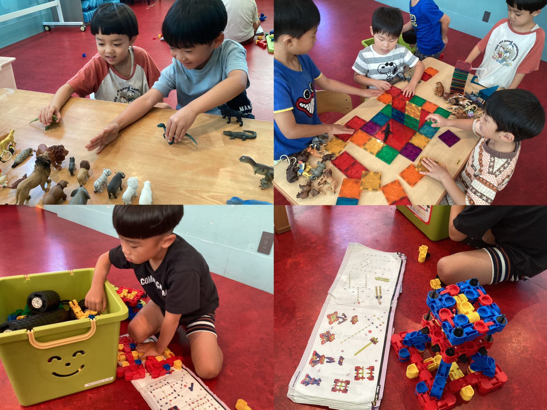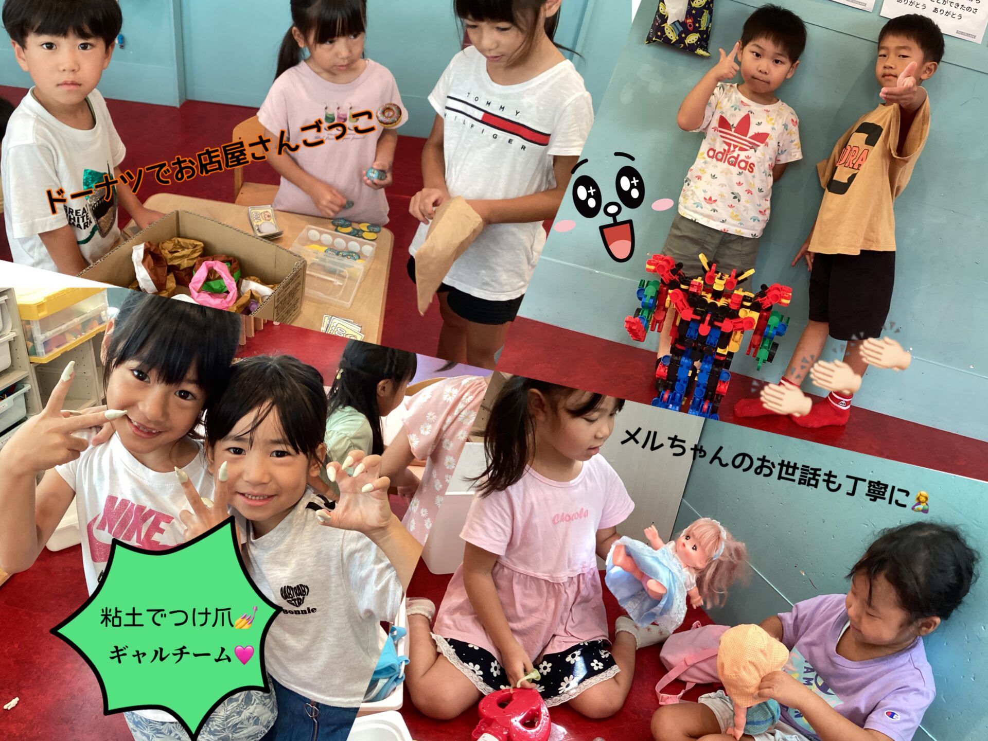 ブロックやおままごと、粘土を使って遊んだり、それぞれ遊び方を考えながらお友達と遊びました。