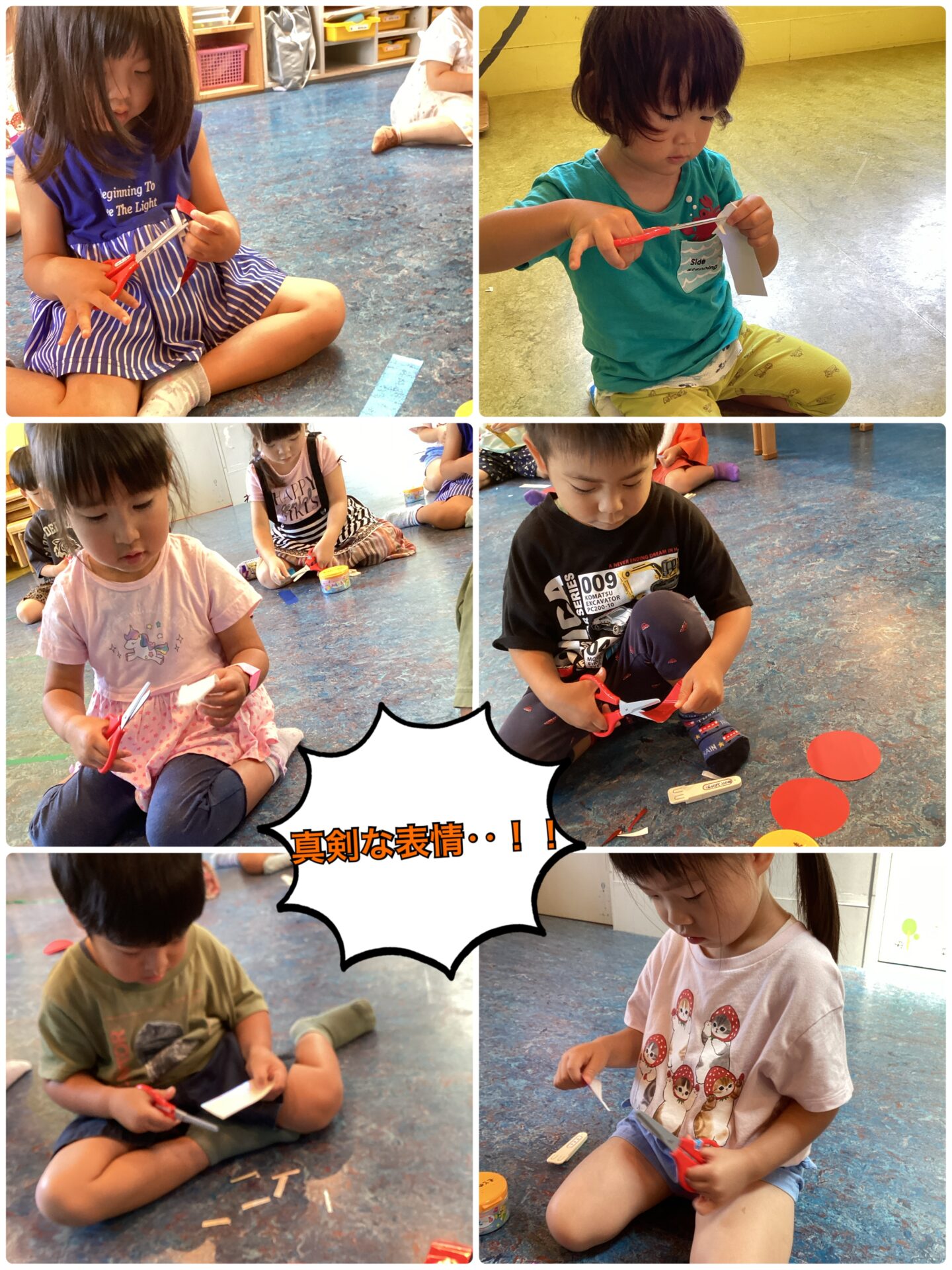 今月の製作ではハサミに挑戦しました!✂️ハサミも正しく持つ事ができ、真剣な表情で取り組んでいた子ども達でした😊✨