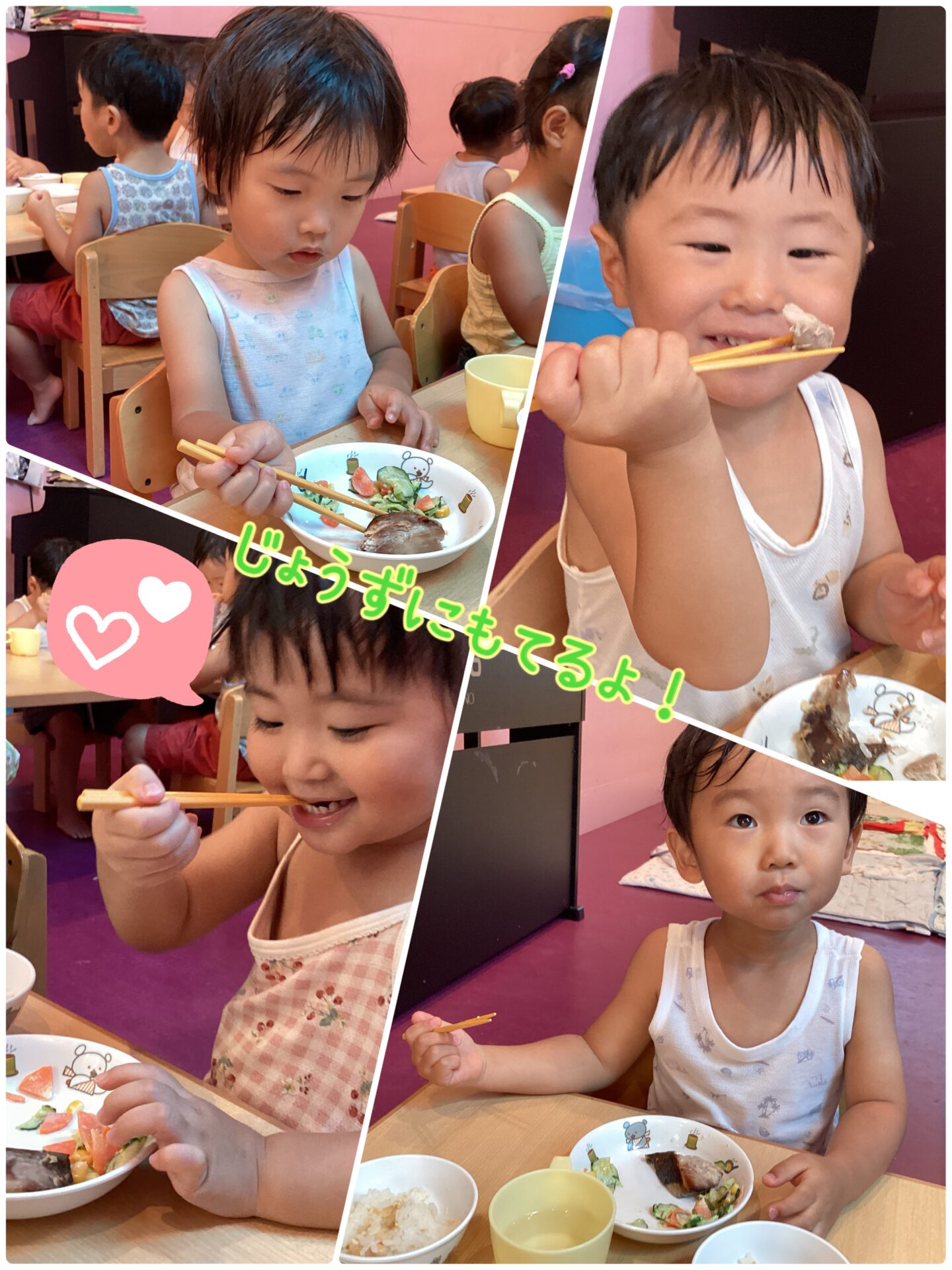 そして、進級に向けて少しずつお箸を使って給食を食べる練習をしています😊