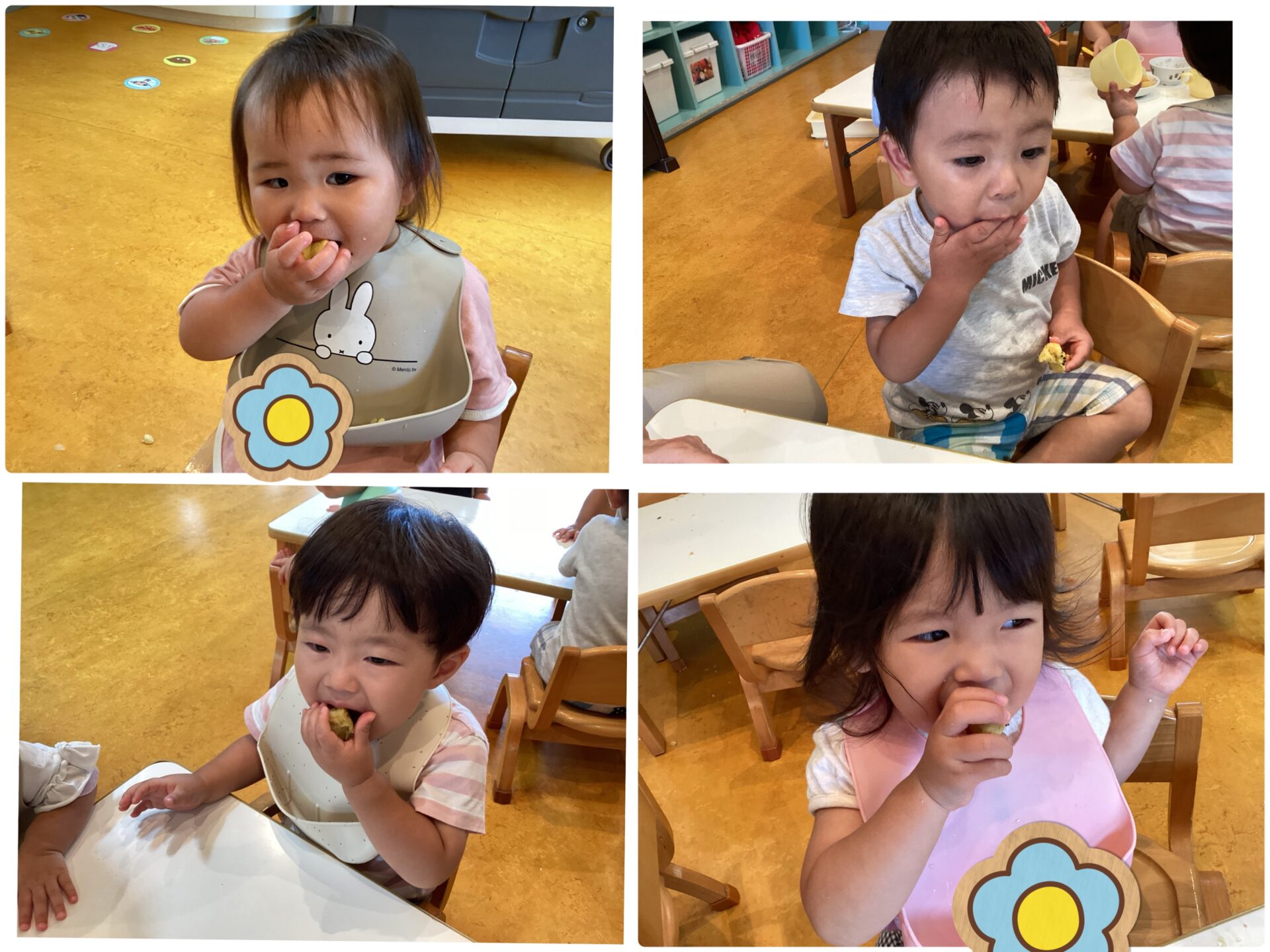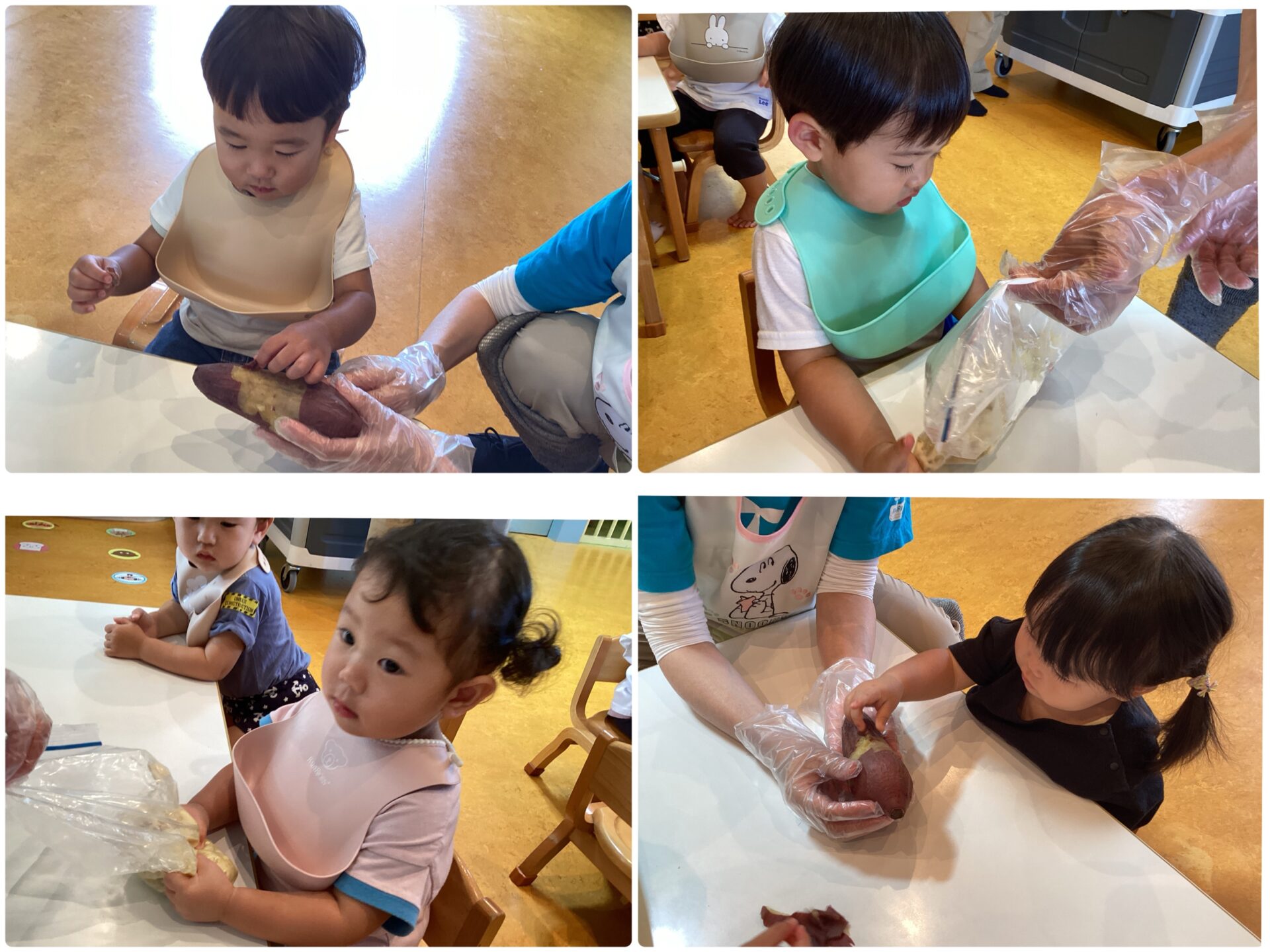 オーブンで10分ほど焼き完成です🍠🩷ご家庭でも作ってみて下さいね!!秋は美味しい食べ物がたくさんですね!遊びから食へと繋がるように来月も計画してます👏🏼👏🏼お楽しみに〜🩷🩷
