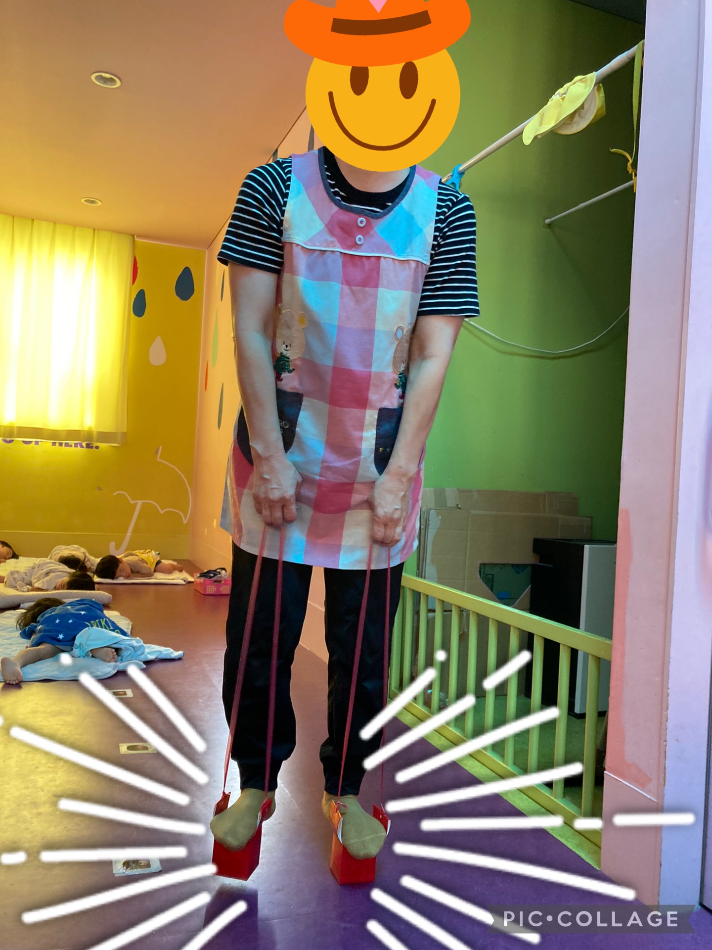出来上がった玩具で、保育者も実際に遊びながら、出来上がり具合を確かめてみました😁