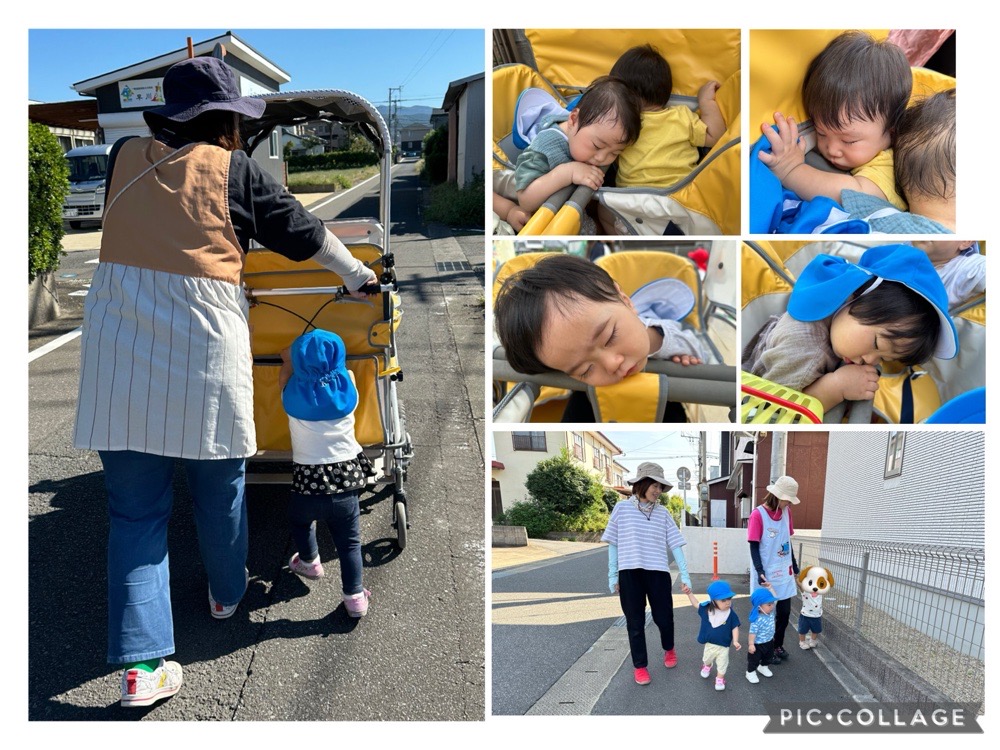 散歩中は、カートの揺れが心地よくて、ついつい眠ってしまうお友達や