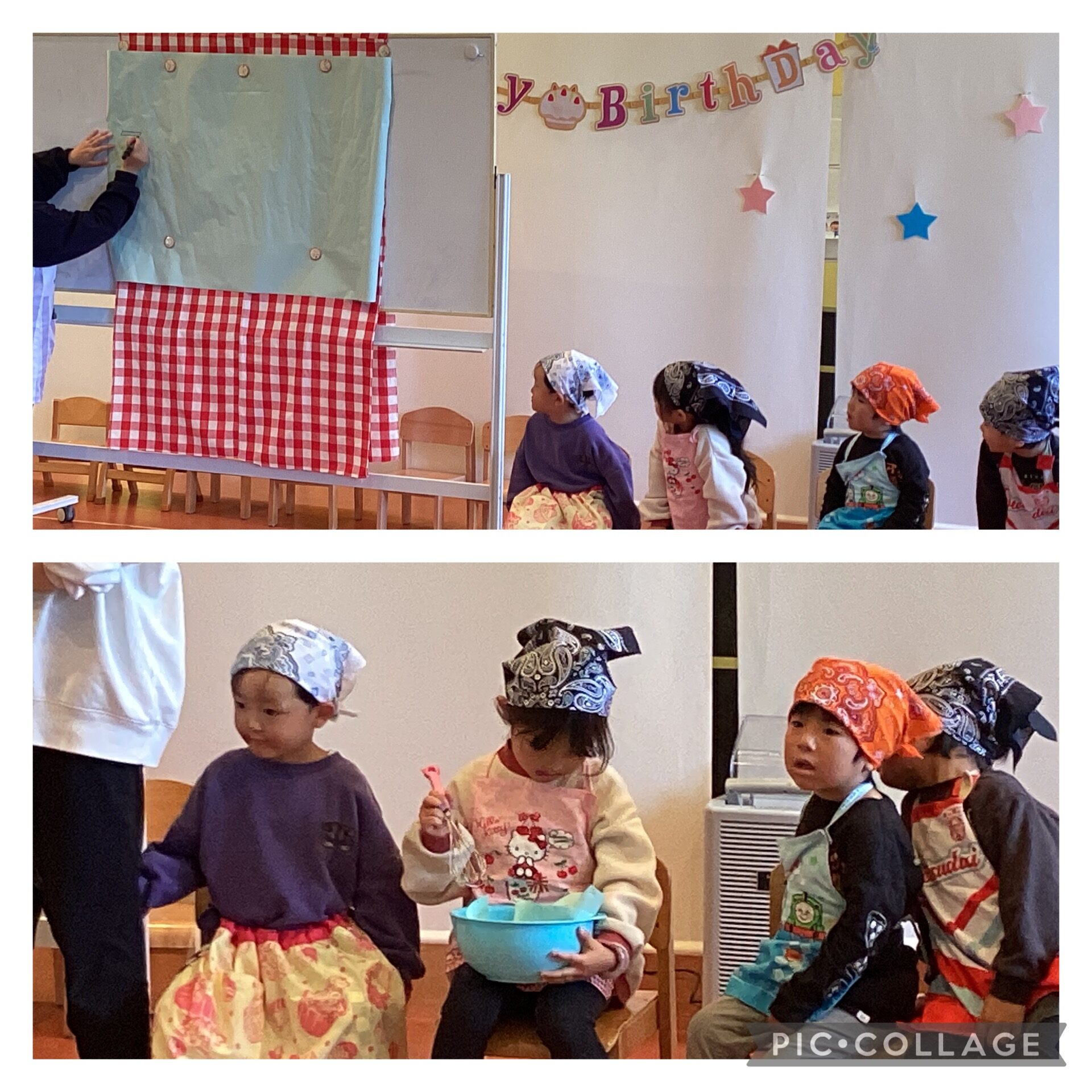 誕生日のお友達にお手伝いをしてもらい、最後はケーキが完成しましたよ🎂