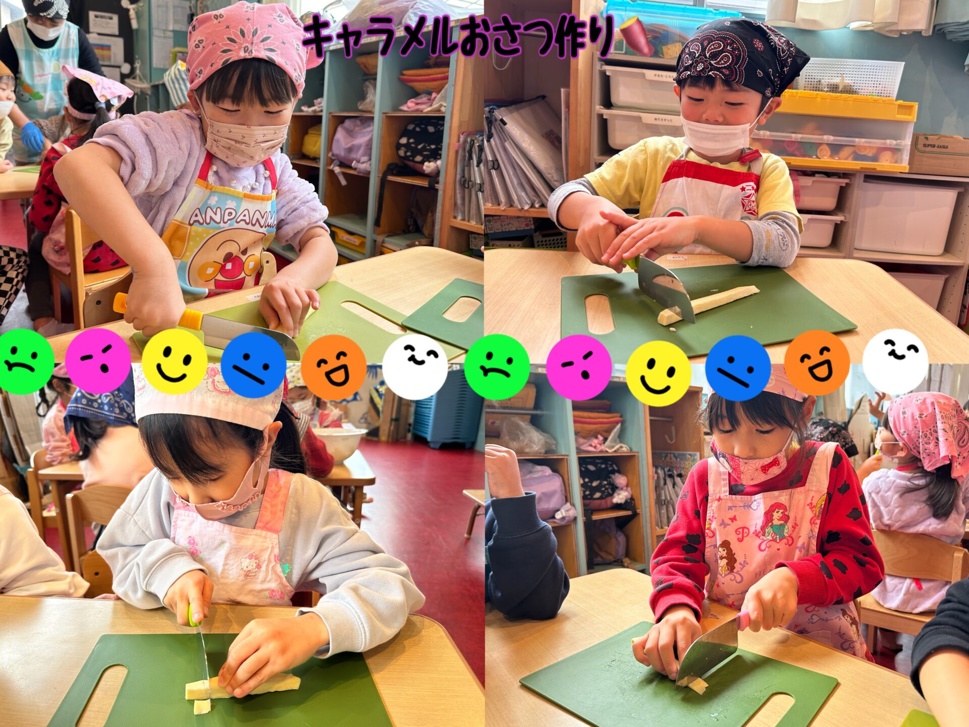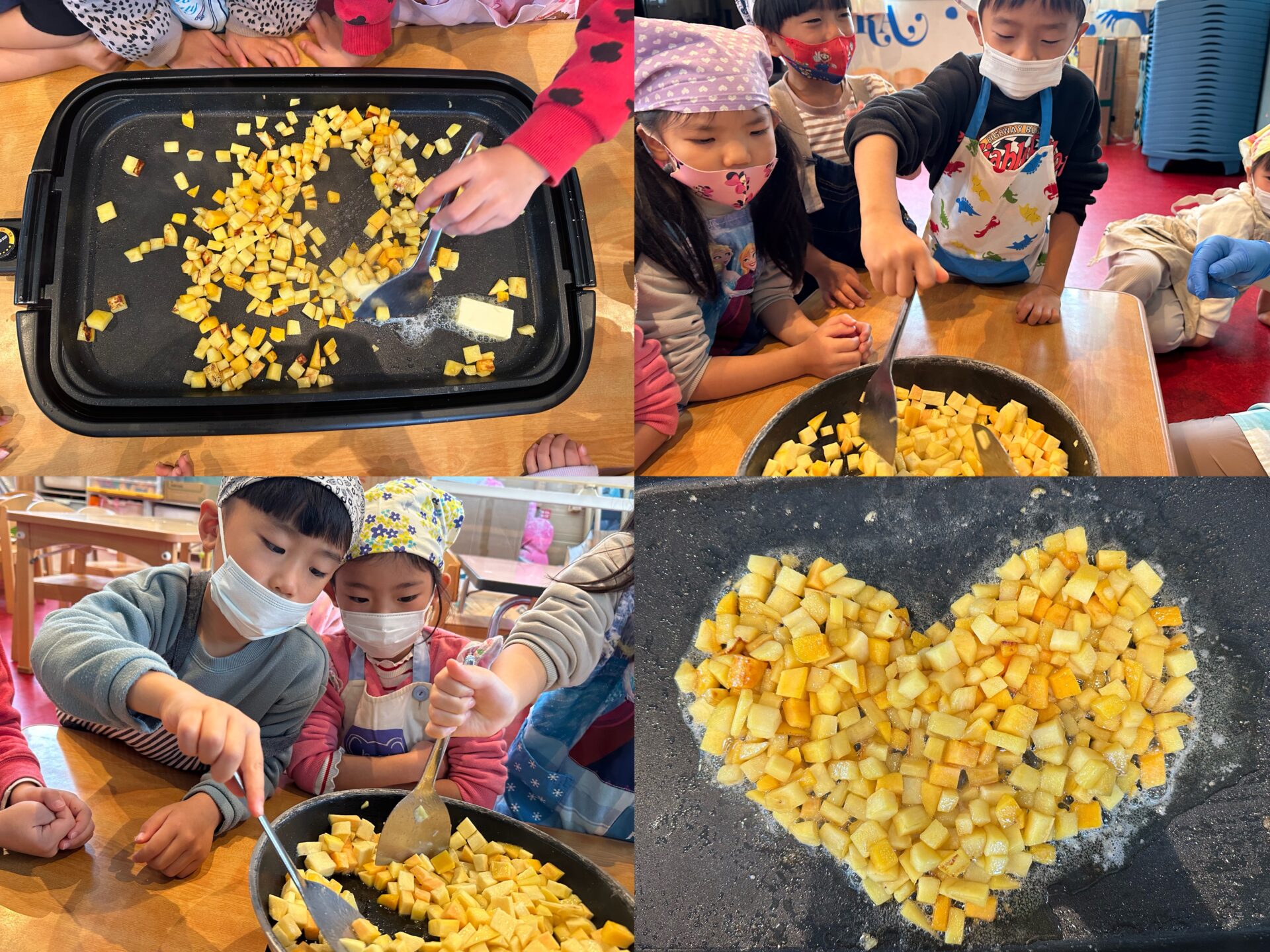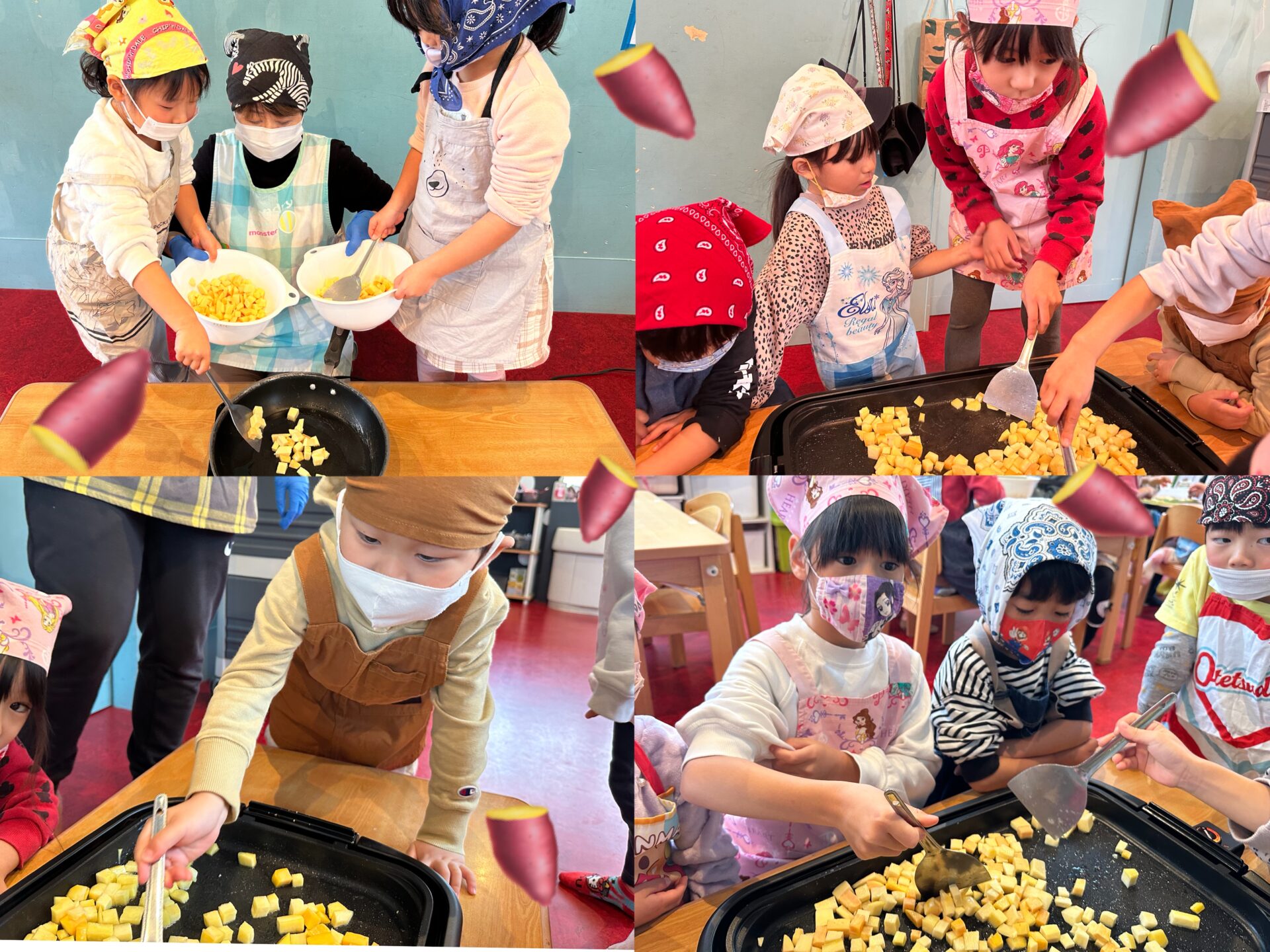 先月芋掘りで収穫をしたお芋を使って,キャラメルおさつのクッキングを行いました👩🍳✨