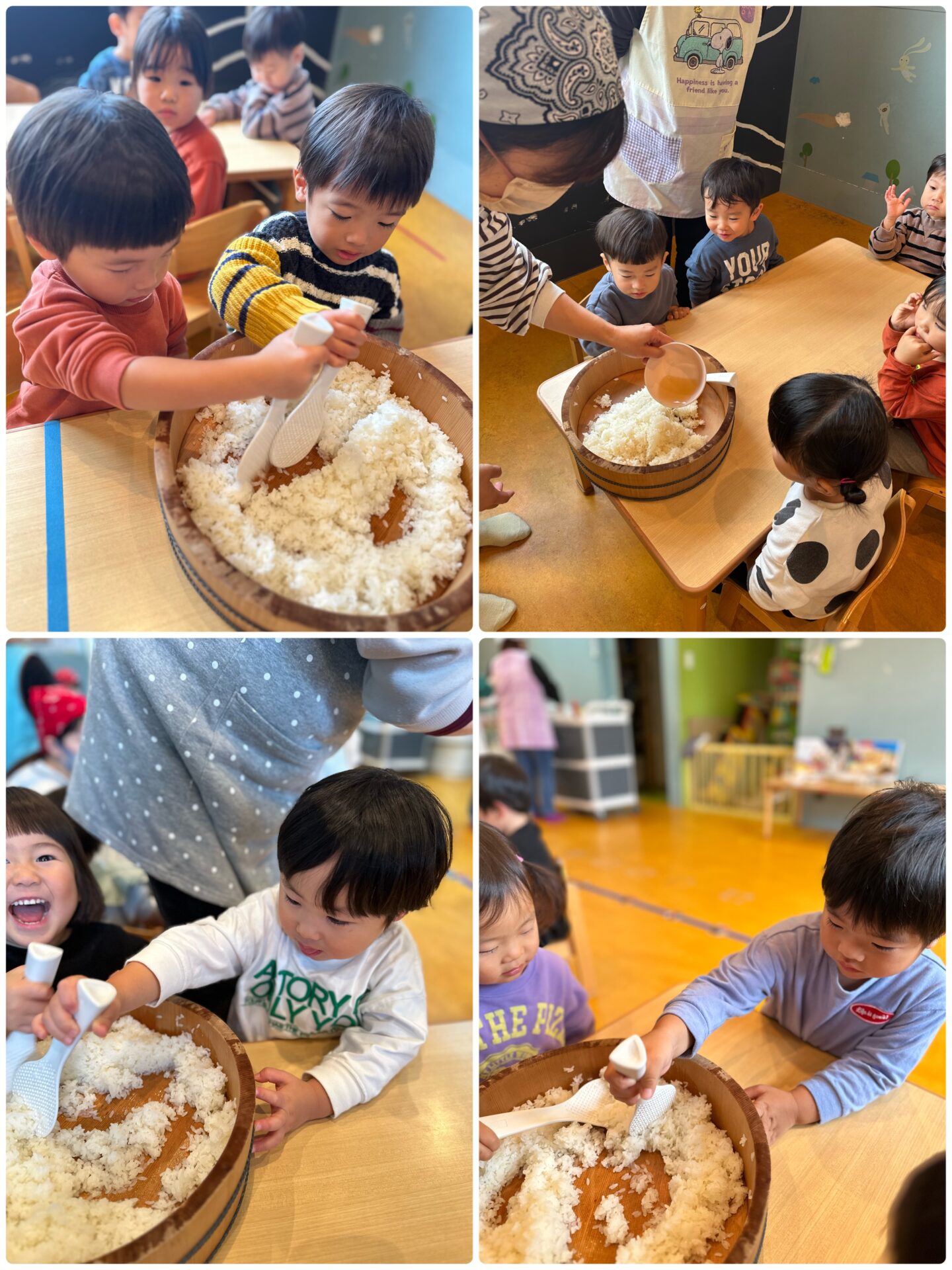 大きな寿司桶のご飯を可愛い小さな手で,一生懸命混ぜる姿が可愛かったです🎶