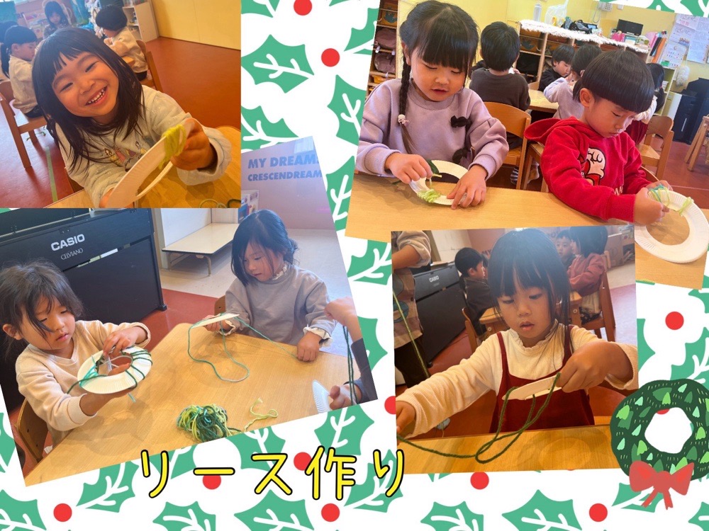 まずは、クリスマスリースを作りました!