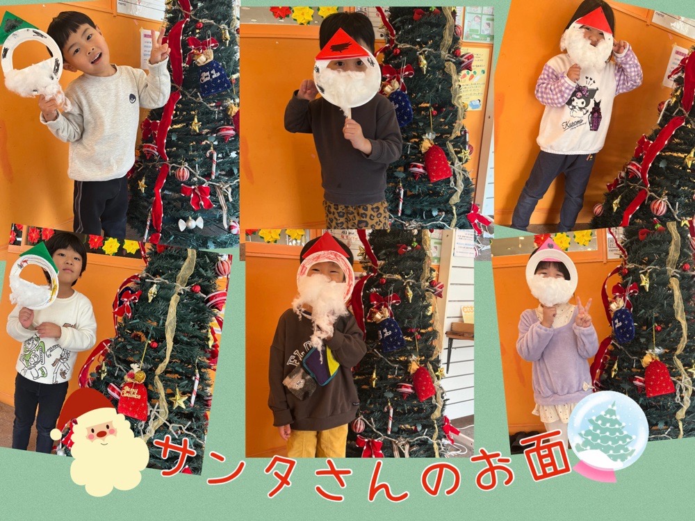 お面が出来たら、クリスマスツリーと一緒にハイ!ポーズ📷