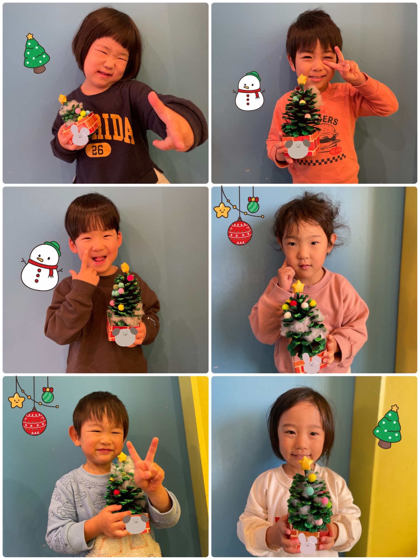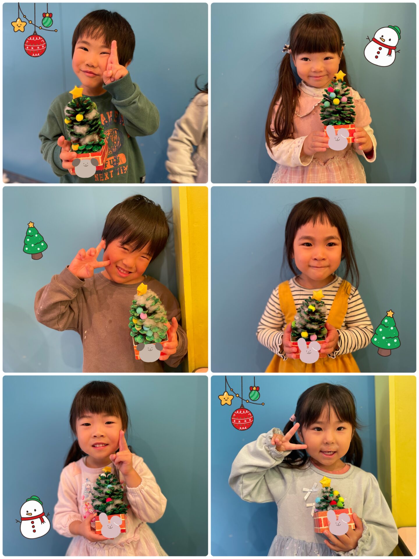 ぽんぽんは綿棒にボンドを付け、それぞれが好きなところに飾りつけをしました🎄