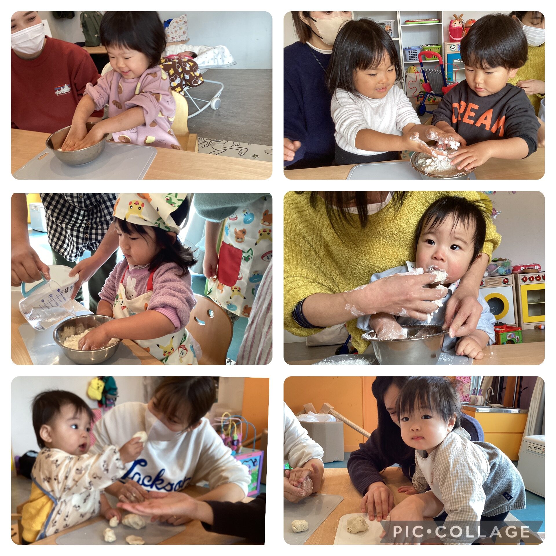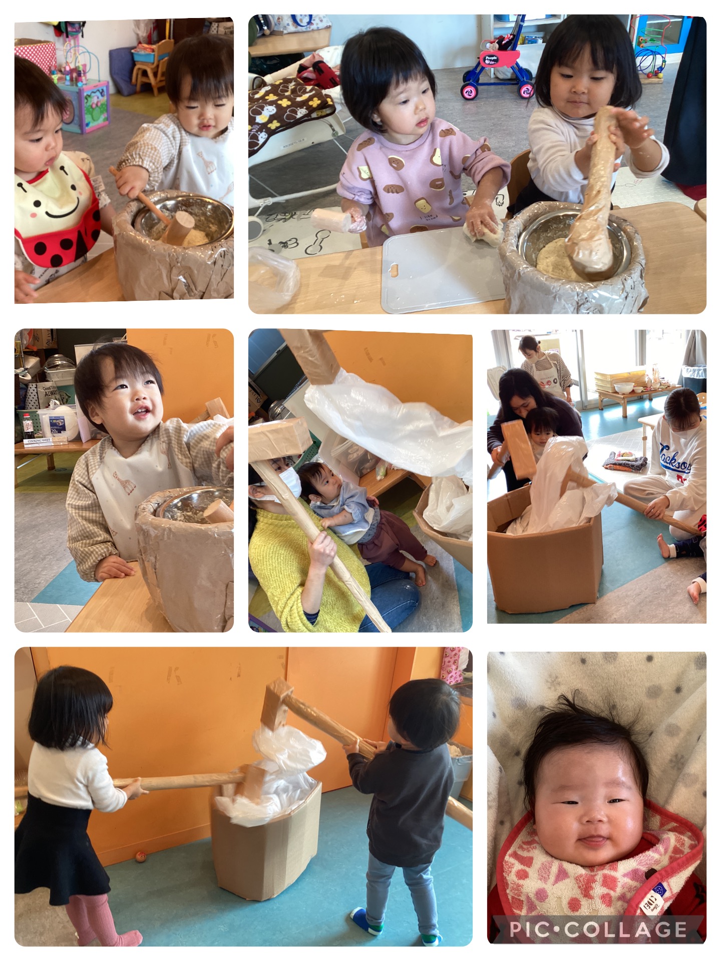 小麦粉粘土をお餅に見立てて、お餅作り🎍✨美味しそうで、思わず食べちゃう!なんてハプニングもありながら、みんなそれぞれのお餅ができました!