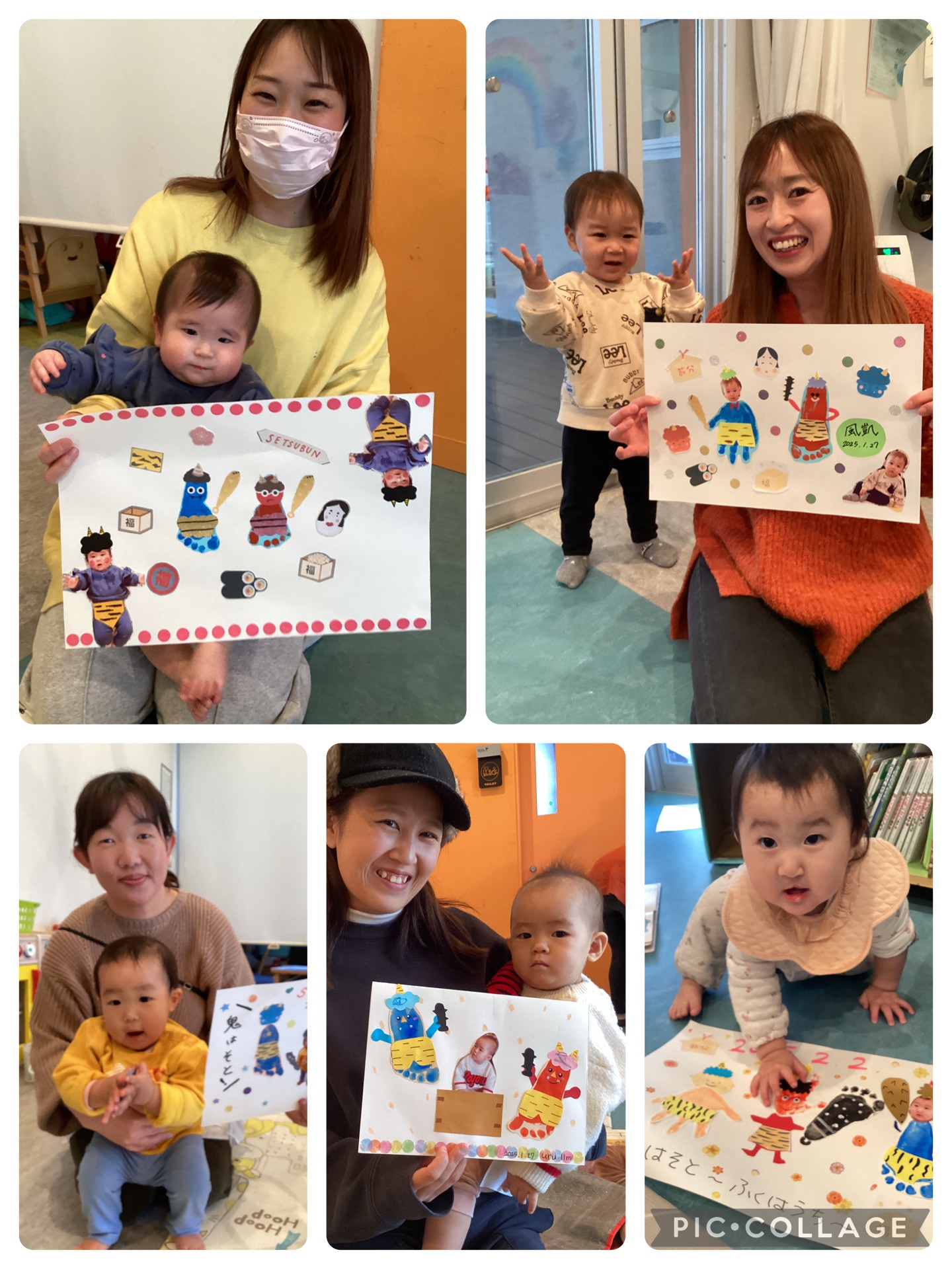 今月の手足型アートは「だるまさん」と「節分」でした!