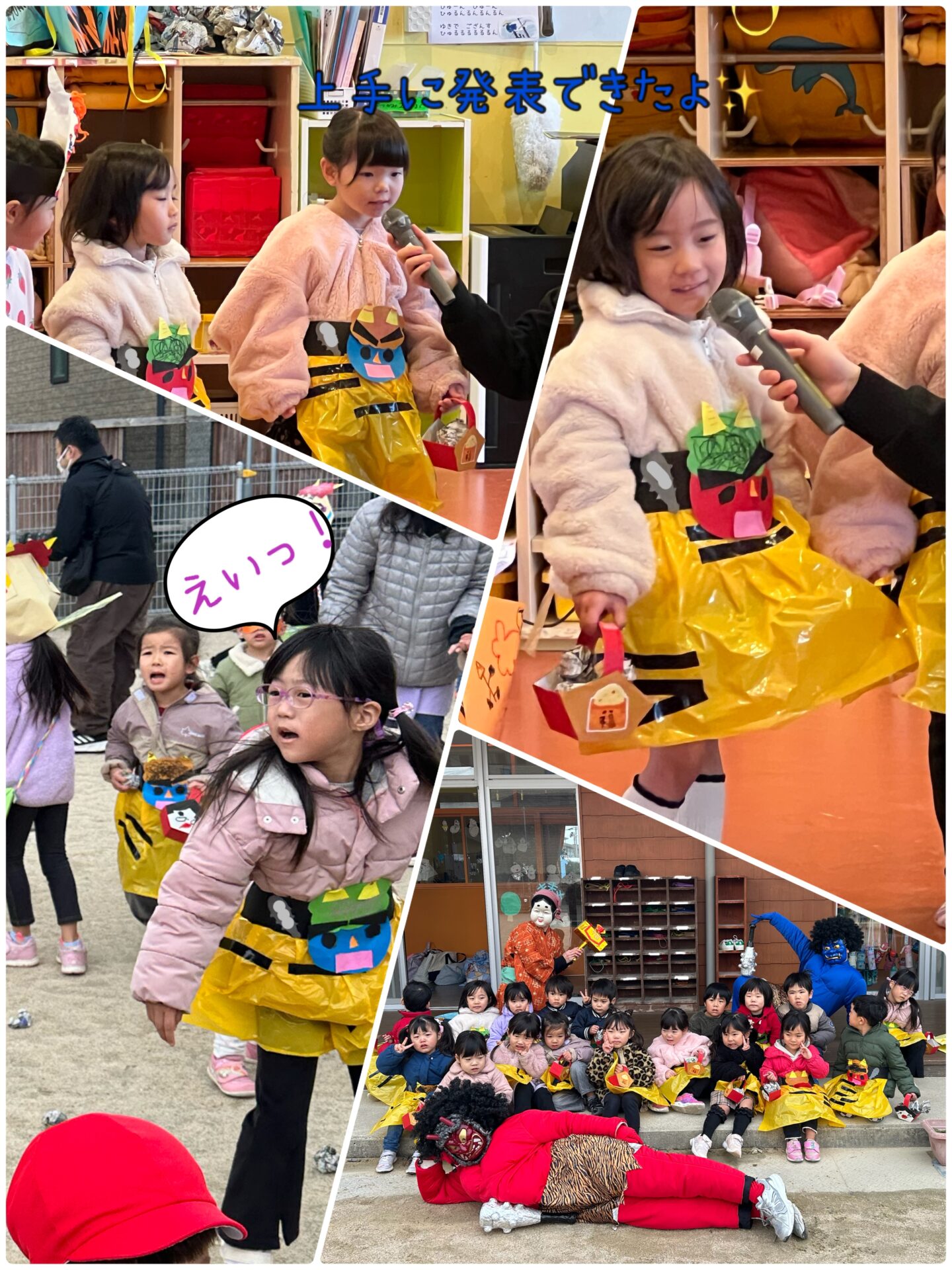 その後は、園庭に出て元気良く『豆まきのうた』を歌って