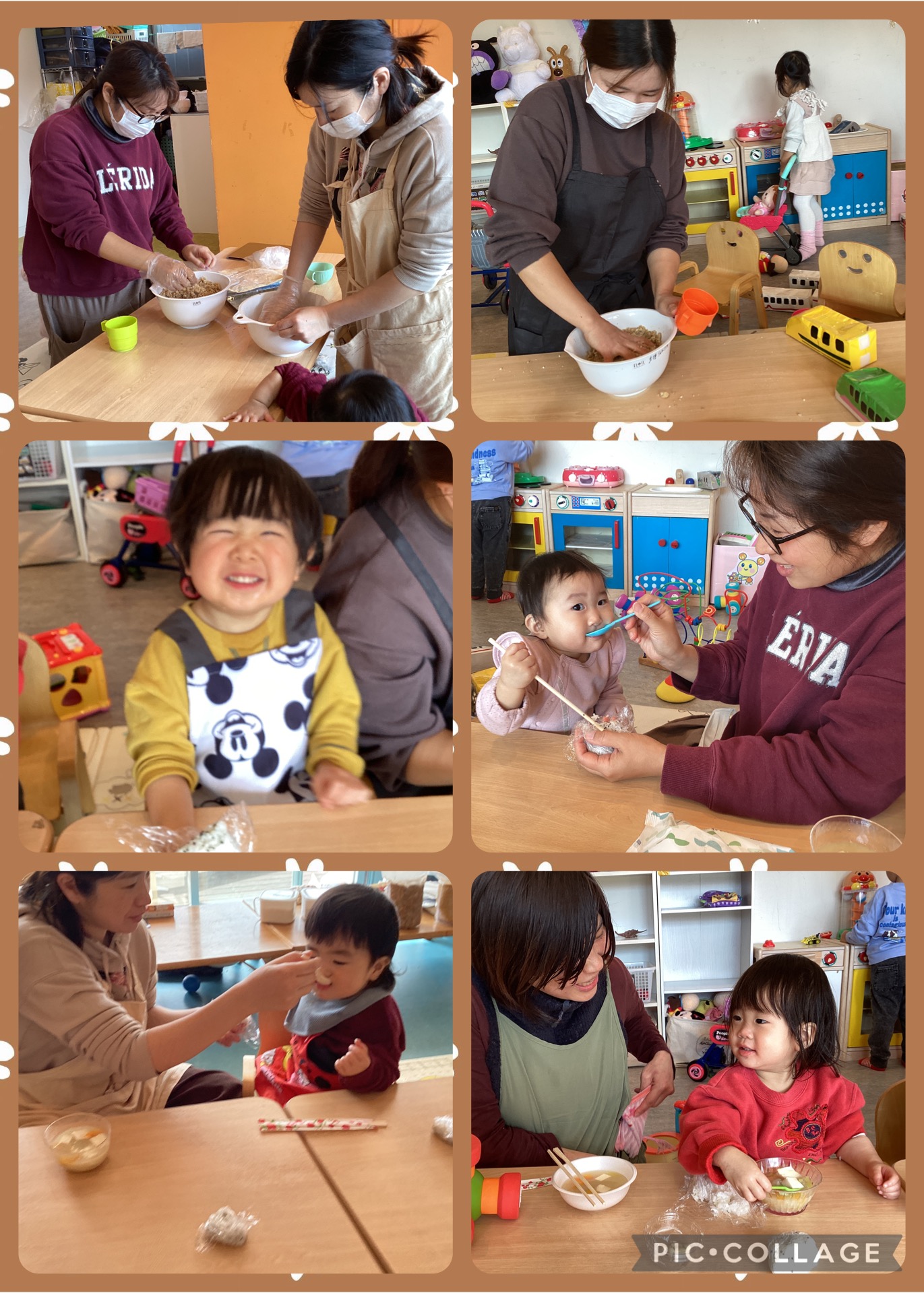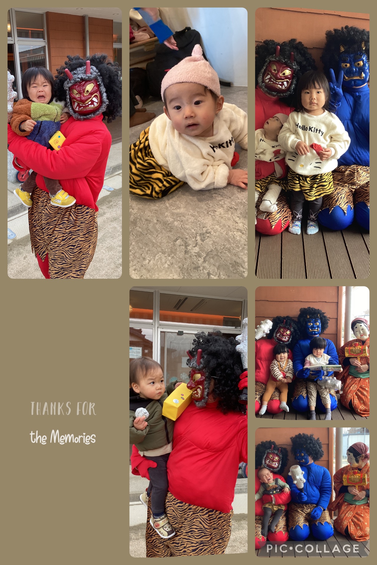赤鬼と青鬼を迎え、お友達が一生懸命、豆に見立てた新聞紙を投げる様子はなんとも言えぬ、可愛さでした🥰泣いてしまった子もいましたが、これで、一年、健康に過ごせますように、、🌟