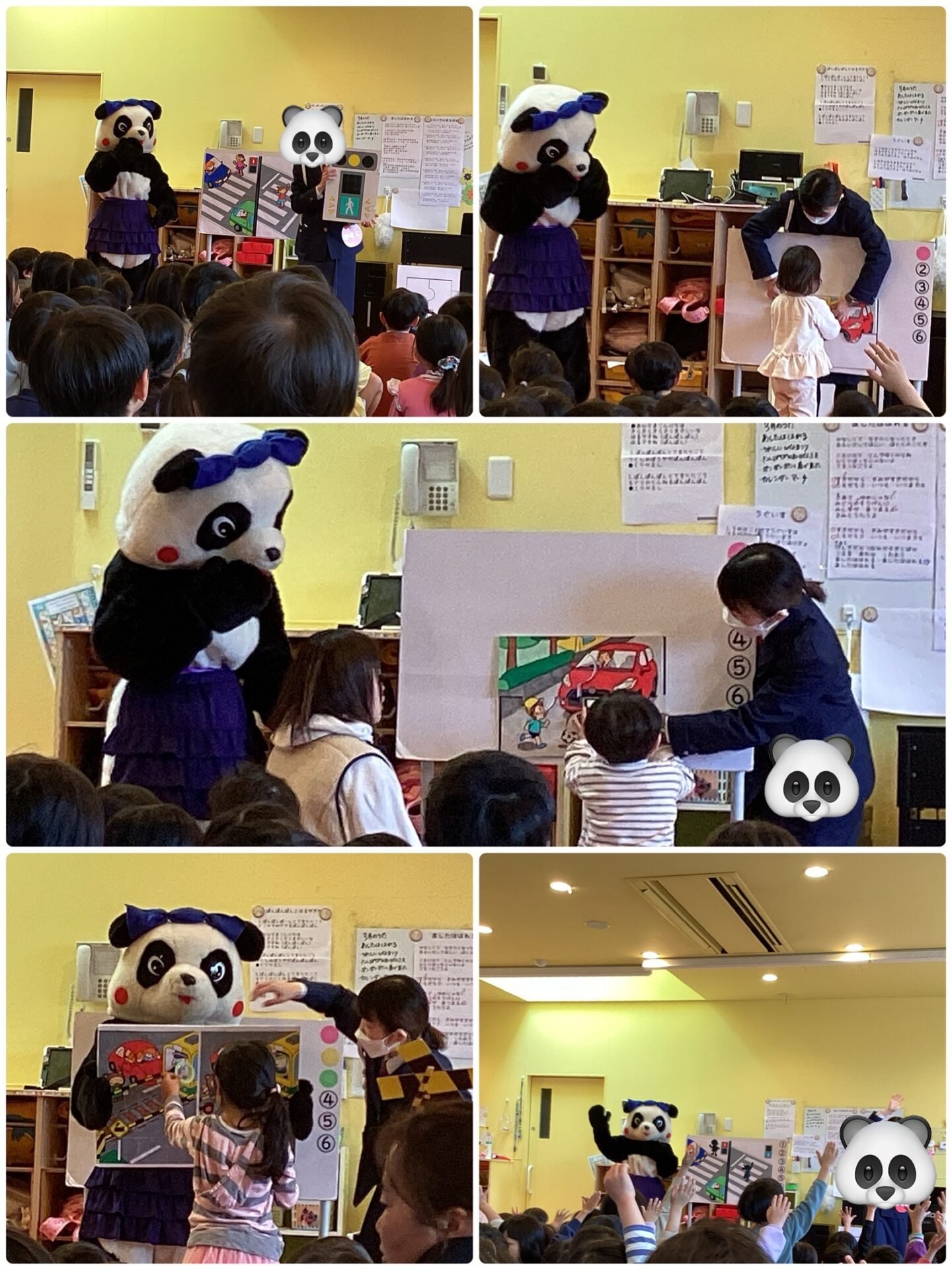 三月の交通安全教室にはパンダのパンコちゃんがきてくれました🐼