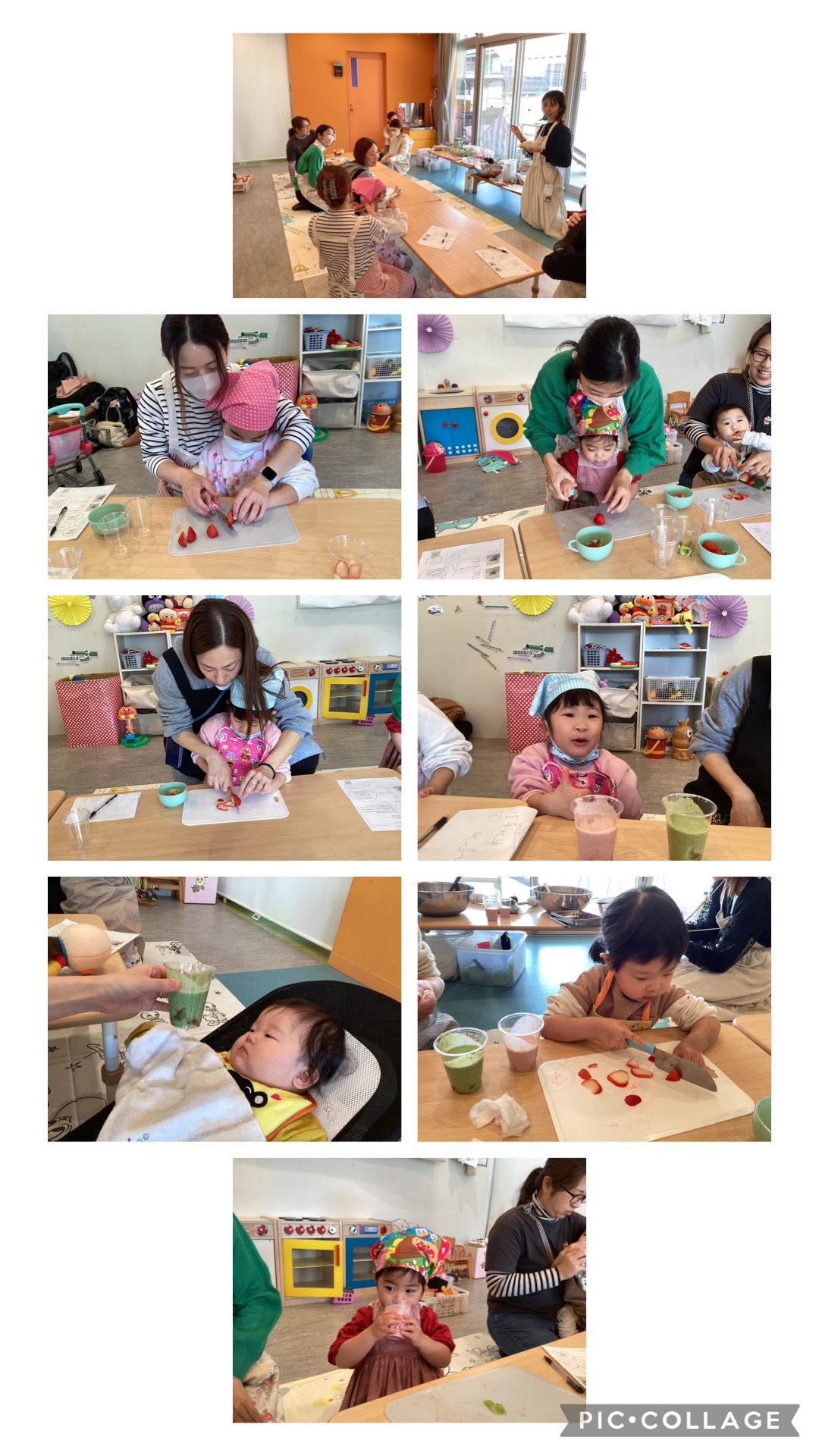 いちごやキウイ、りんごや小松菜を使ったスムージーを二種類作りました✨