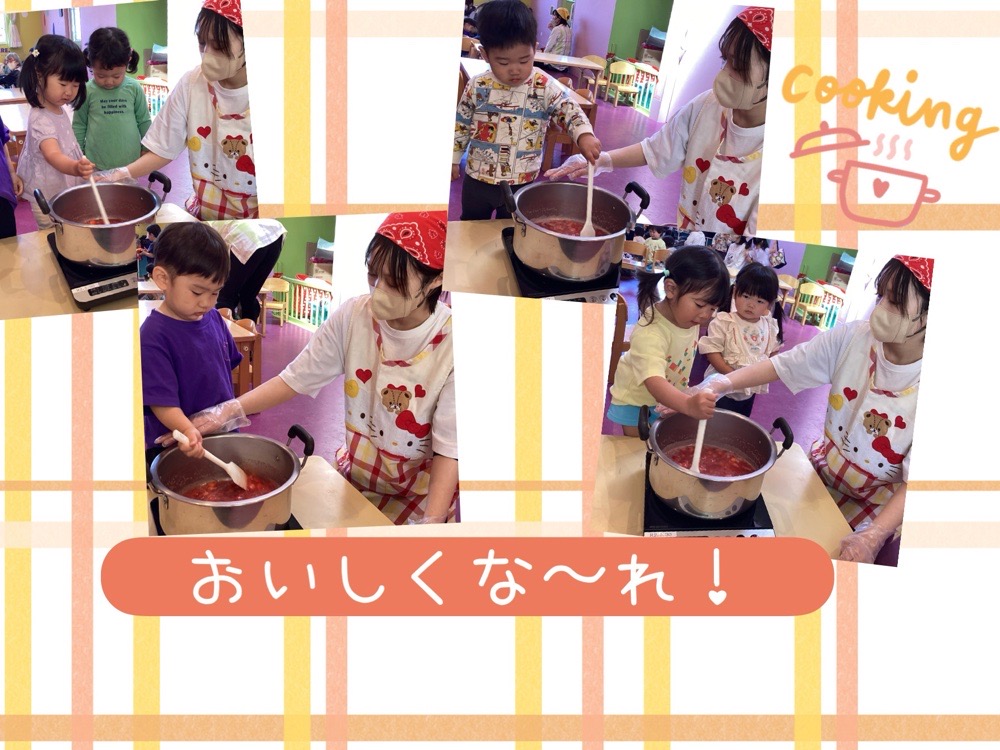 いちごをしっかり潰したら、お鍋に入れて”まぜまぜ”しました!