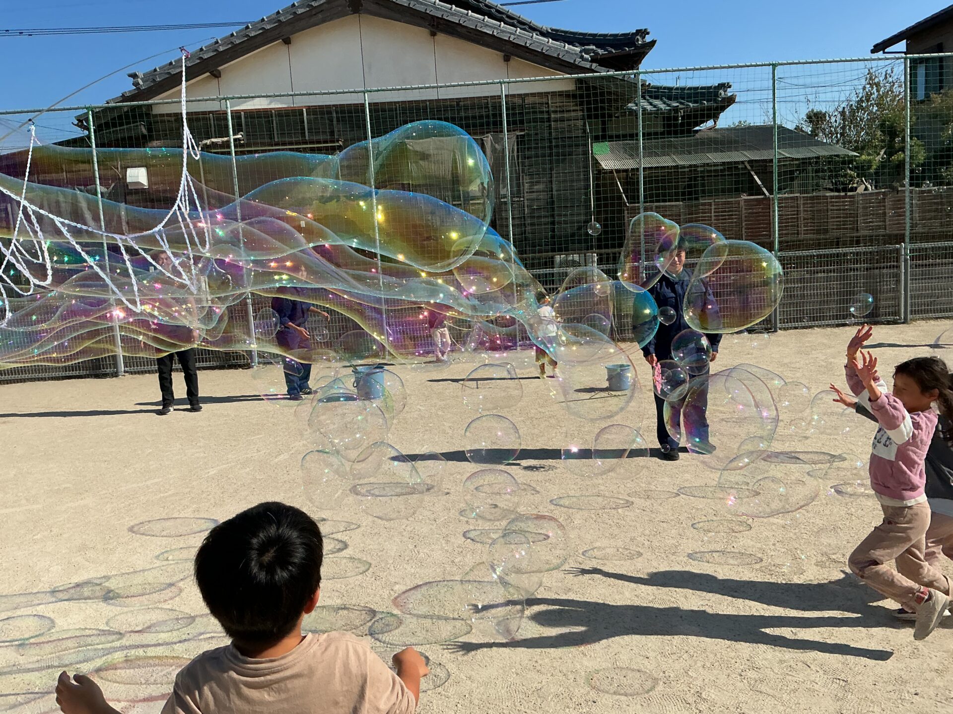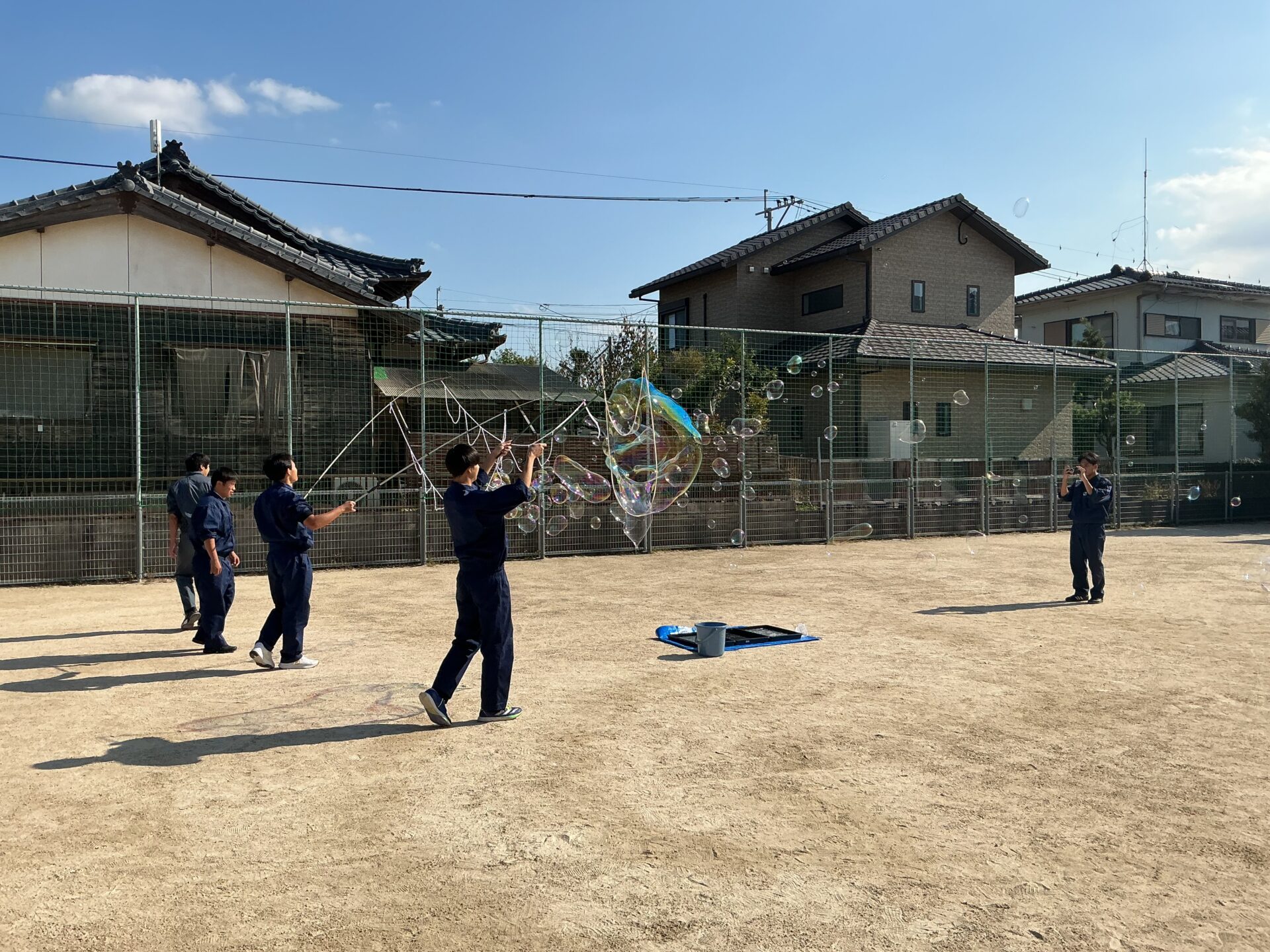 素敵なご縁があり、高校生のお兄さんとしゃぼん玉遊びをしました。