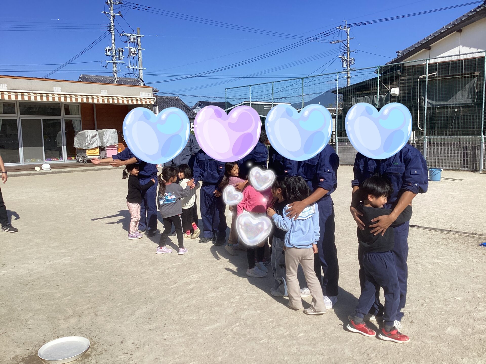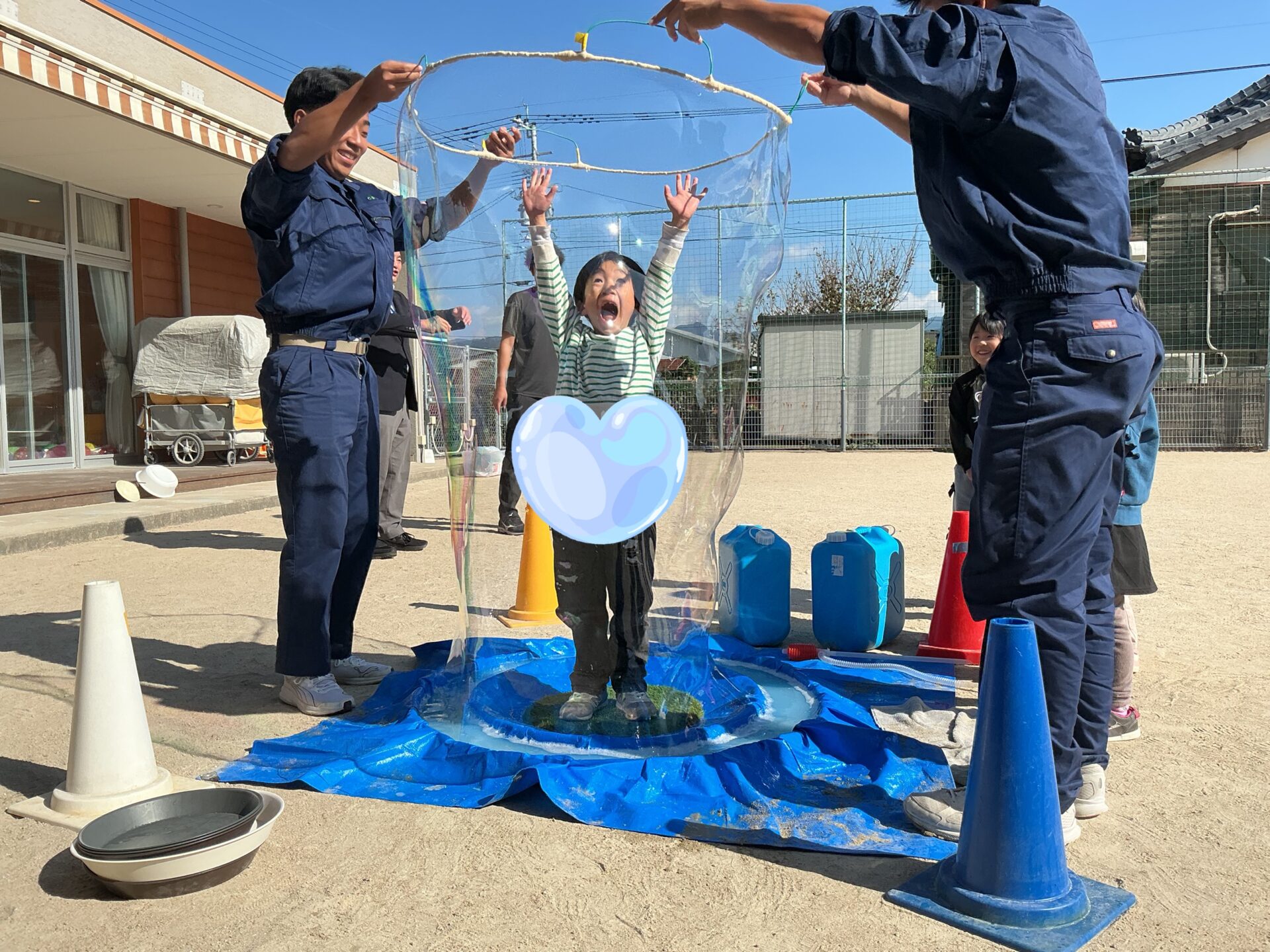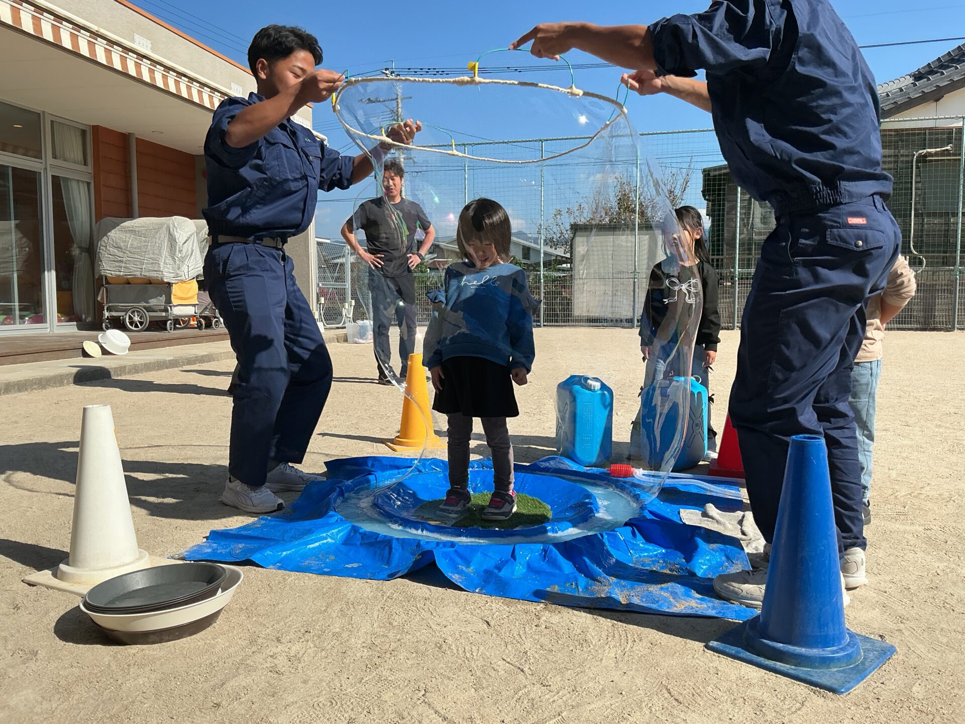 工業高校のお兄さんとしゃぼん玉(5歳児)