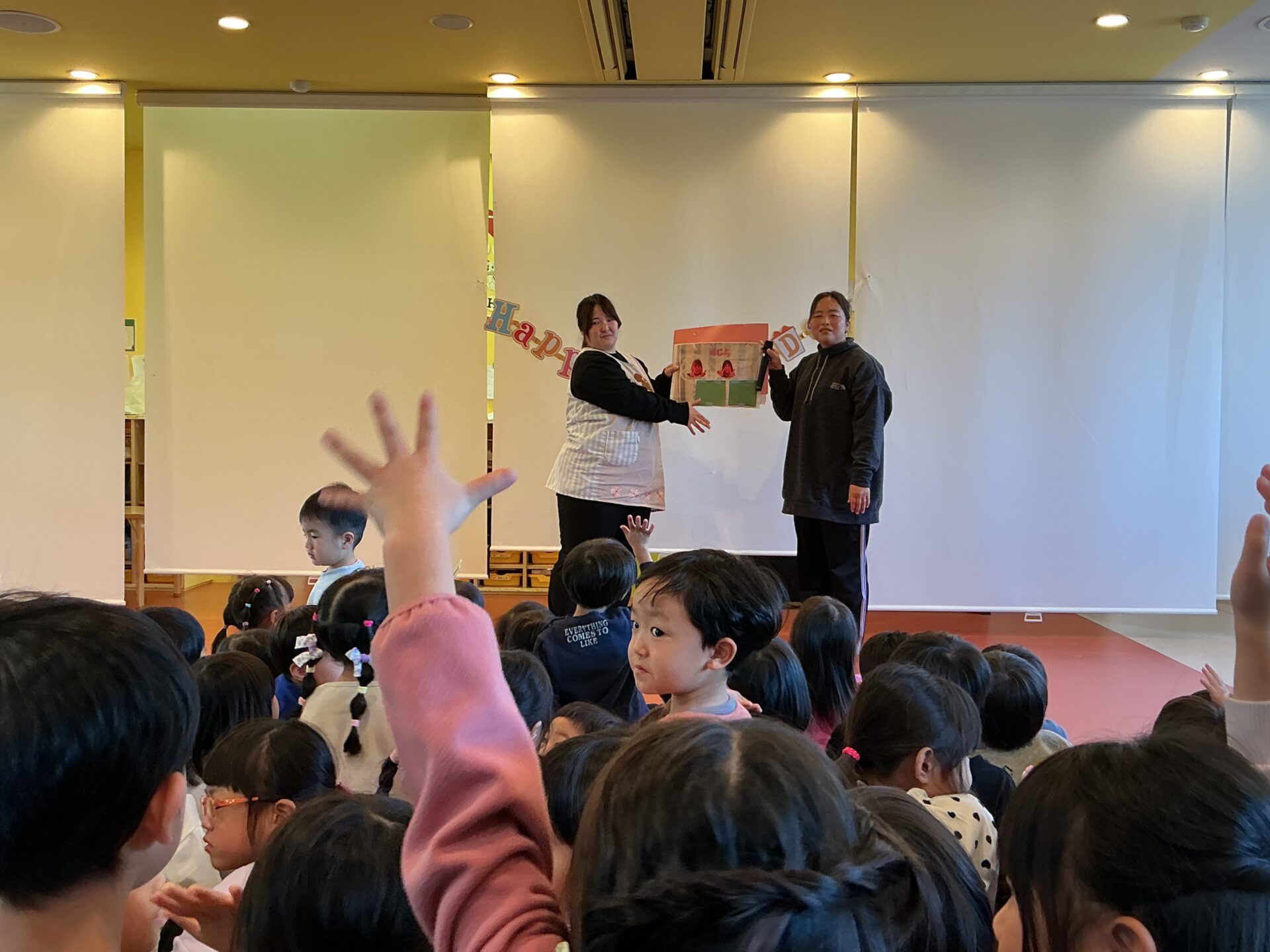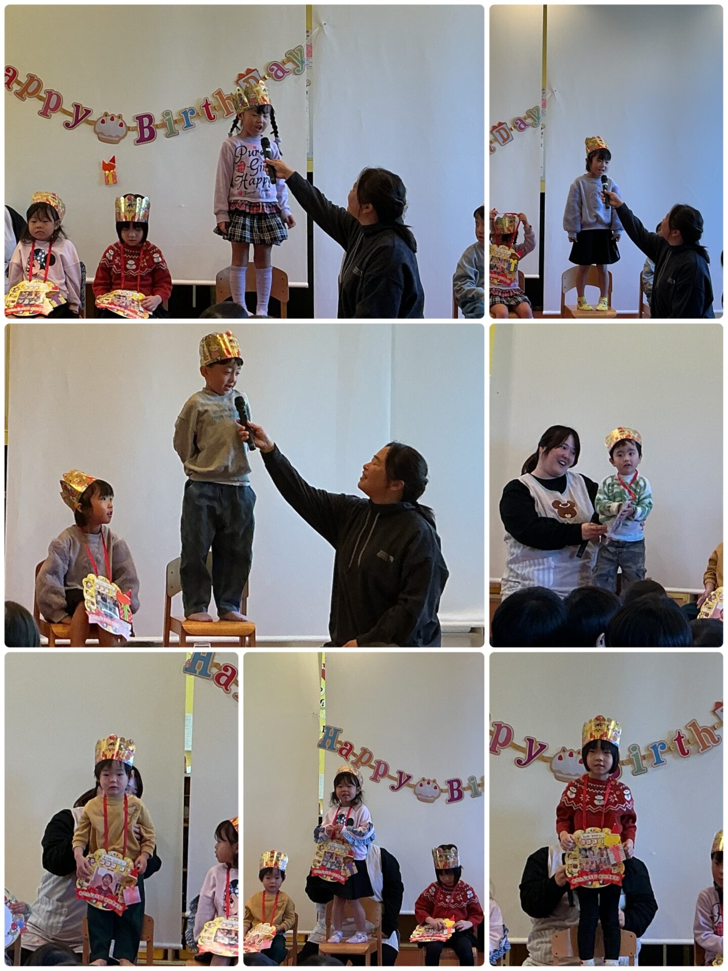 今月は少し早い誕生会が今週ありました♡!自己紹介、質問にもしっかり答えました😆✨保育者の出し物は園内クイズ!!くじら園のこと、先生たちのことどれくらい知ってるかな???「〇〇先生、ここは〇〇チームのお部屋だ!」とよく答えてました♡