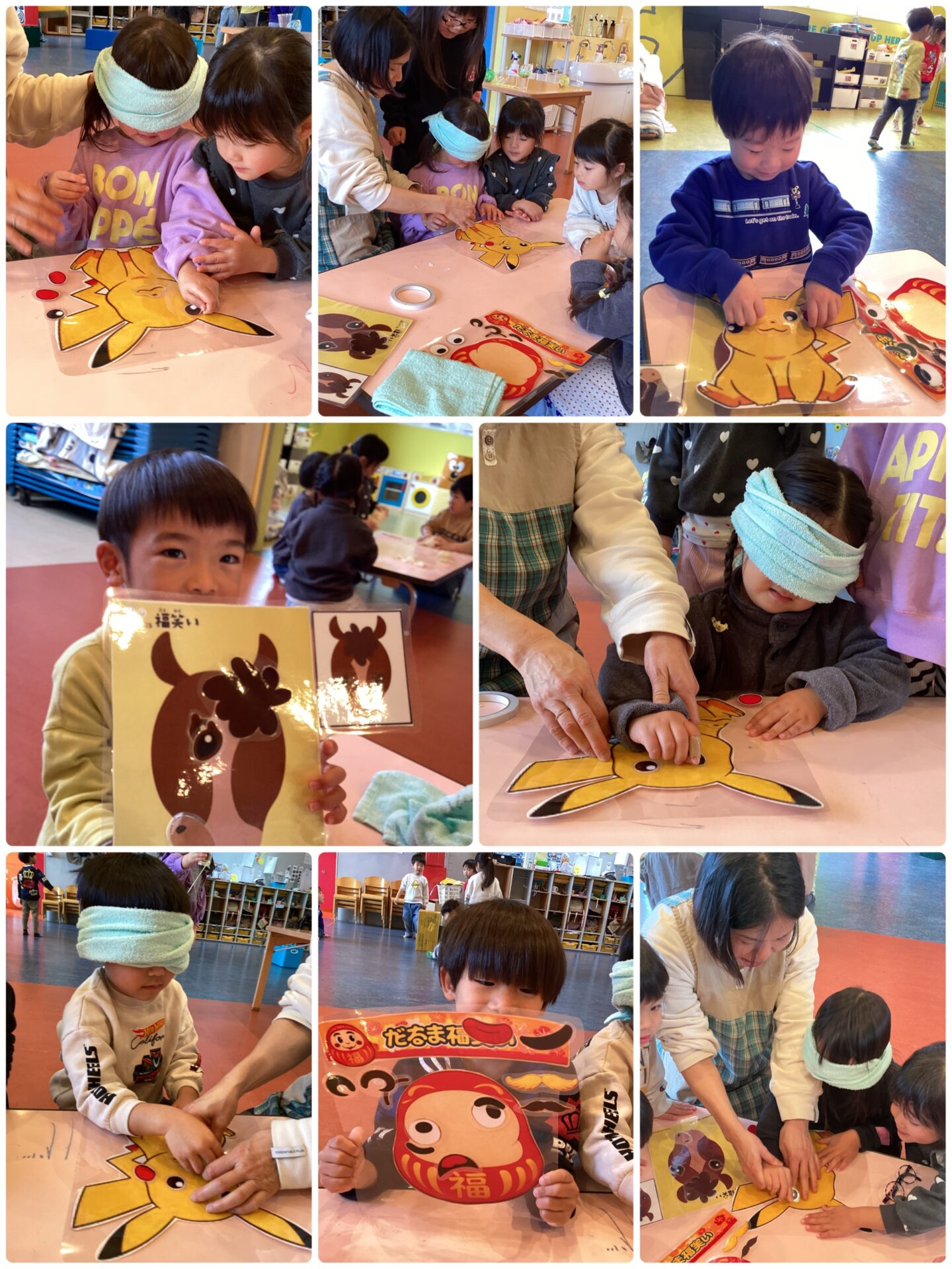 面白い表情に仕上がった福笑いを見て、目隠しを取った子ども達も笑ってしまっていました😆