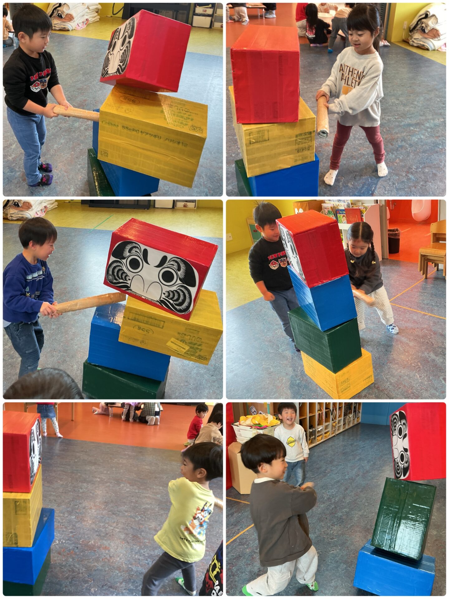 だるま落としは大人気でした✨力いっぱい倒して楽しんでいました😆‼︎